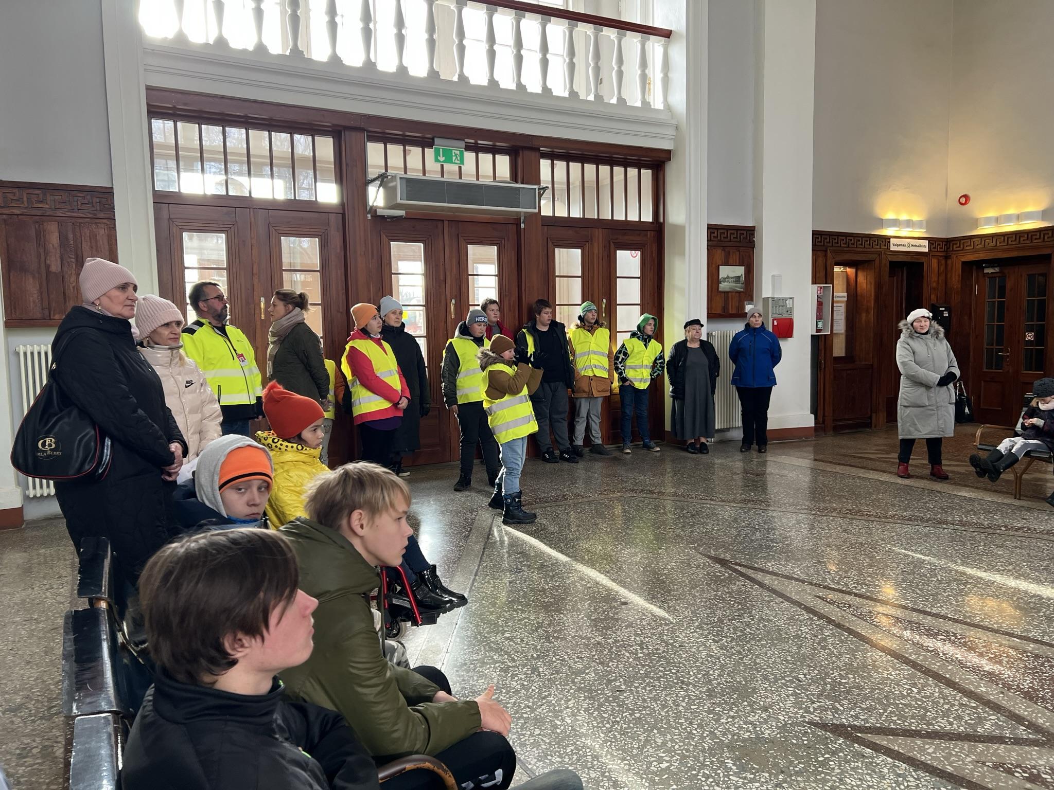 Kell 11.30 olime kõik raudteejaamas, kus räägiti raudtee ajaloost Valgas. Valga raudteejaam rajati koos 1887. aastal valminud laiarööpmeliselink opens on new page Tartu–Valga raudteegalink opens on new page, mis ehitati osana Pihkva–Riia raudteestlink opens on new page. 1888. aastal käivitus rongiliiklus läbi Valga ka Tartu ja Riia vahel. 1889. aasta 27. novembril avati Valga reisijate jaamahoone. See jaamahoone hävis 1944.aastal. Praegune jaamahoone valmis 1949.aastal.