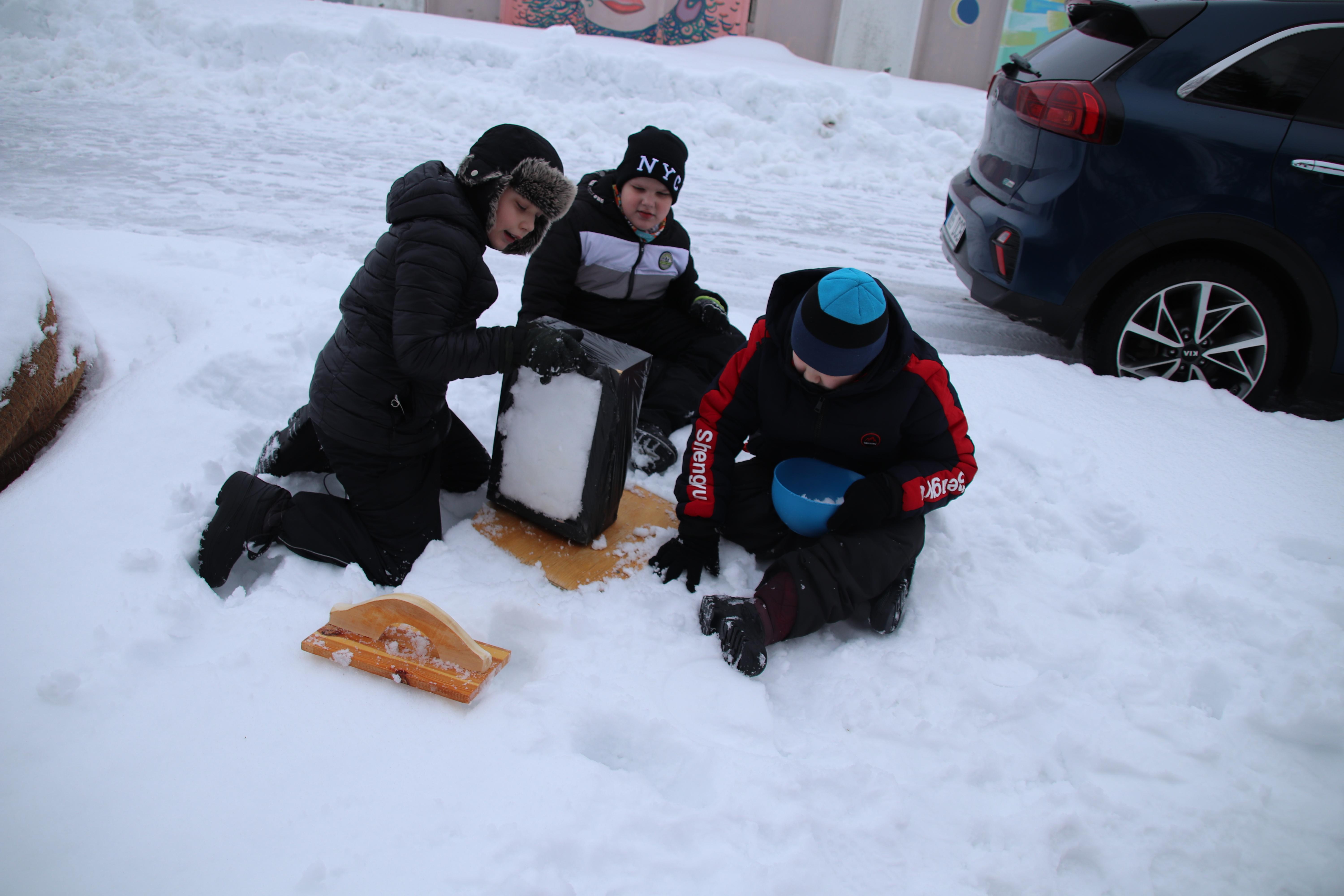 Oli huvitavaid projekte- 7. klassi poisid õpetaja Jüri juhendamisel projekteerisid püramiidi, ehitati huvitavaid lumekujusid ja värvilisi figuure. 3. klassi õpilased meisterdasid lumest lustilise lumememme. Kõikidel oli vahva ja tore tegutseda.