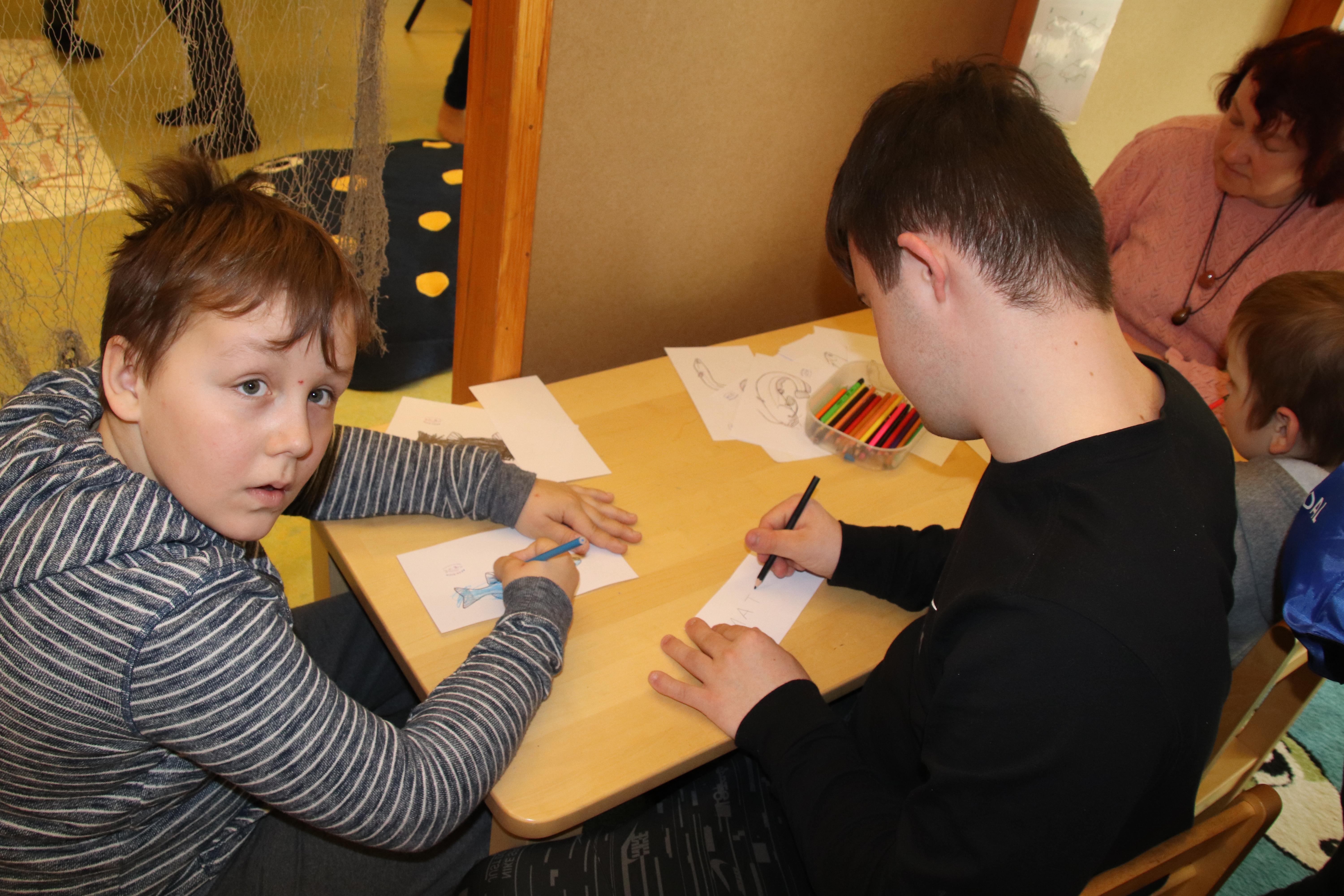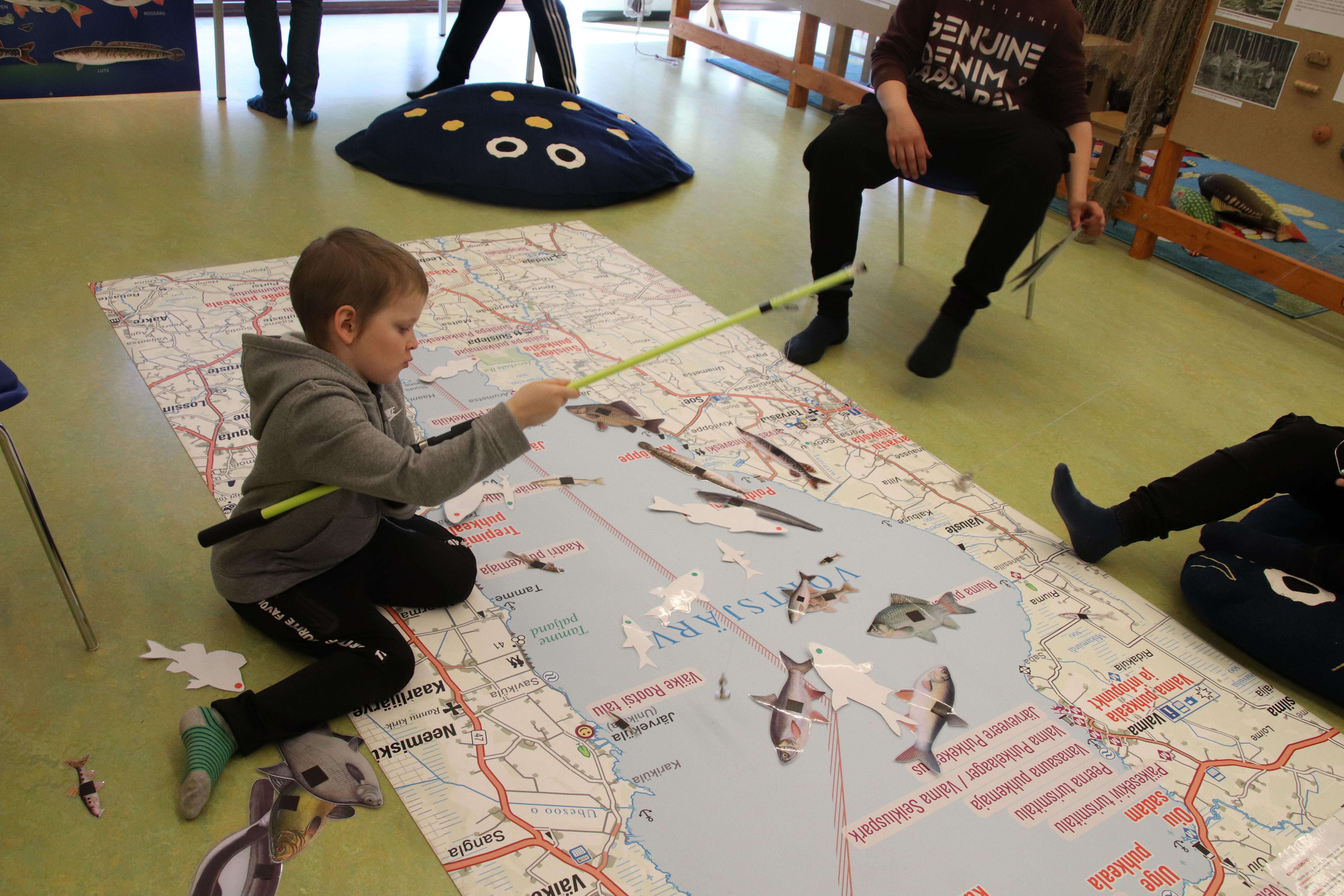 Teisel korrusel saime toredate tegevustega aega veeta: joonistada ja värvida erinevaid kalu, magnetõngega õngitseda ja kindel see - igaüks sai „kala“ kätte. Uute teadmistega oli vee-elanike määramise ülesannet lihtne lahendada. Õige vastuse saladus on ühes või kahes seljauimes! Võis ka mõnusalt istuda ja nautida rahustavat järvevaadet.