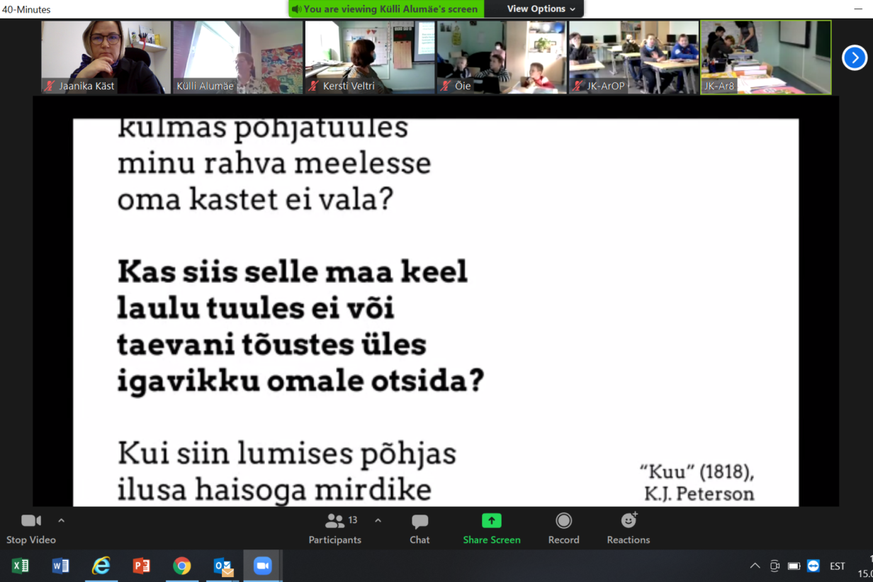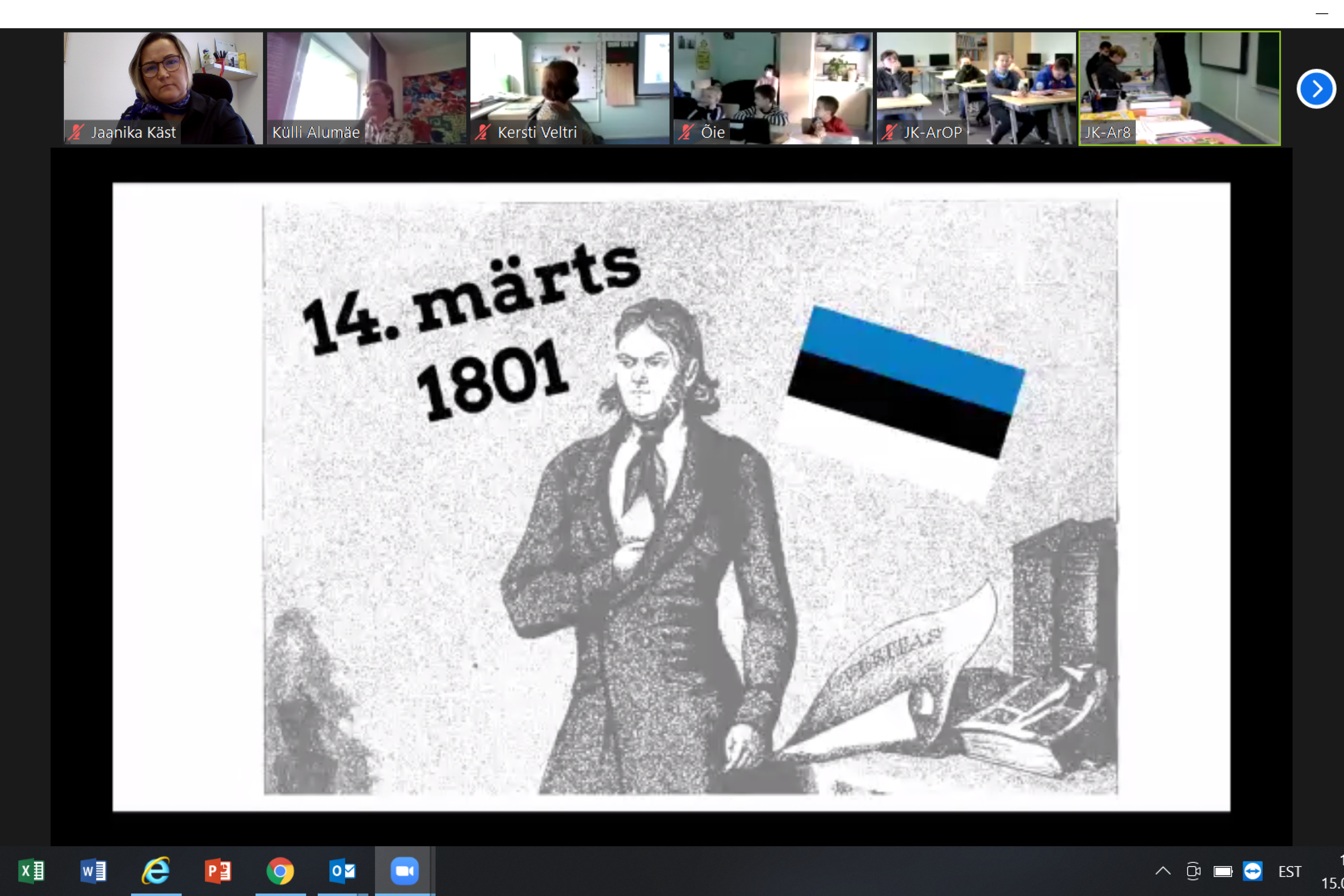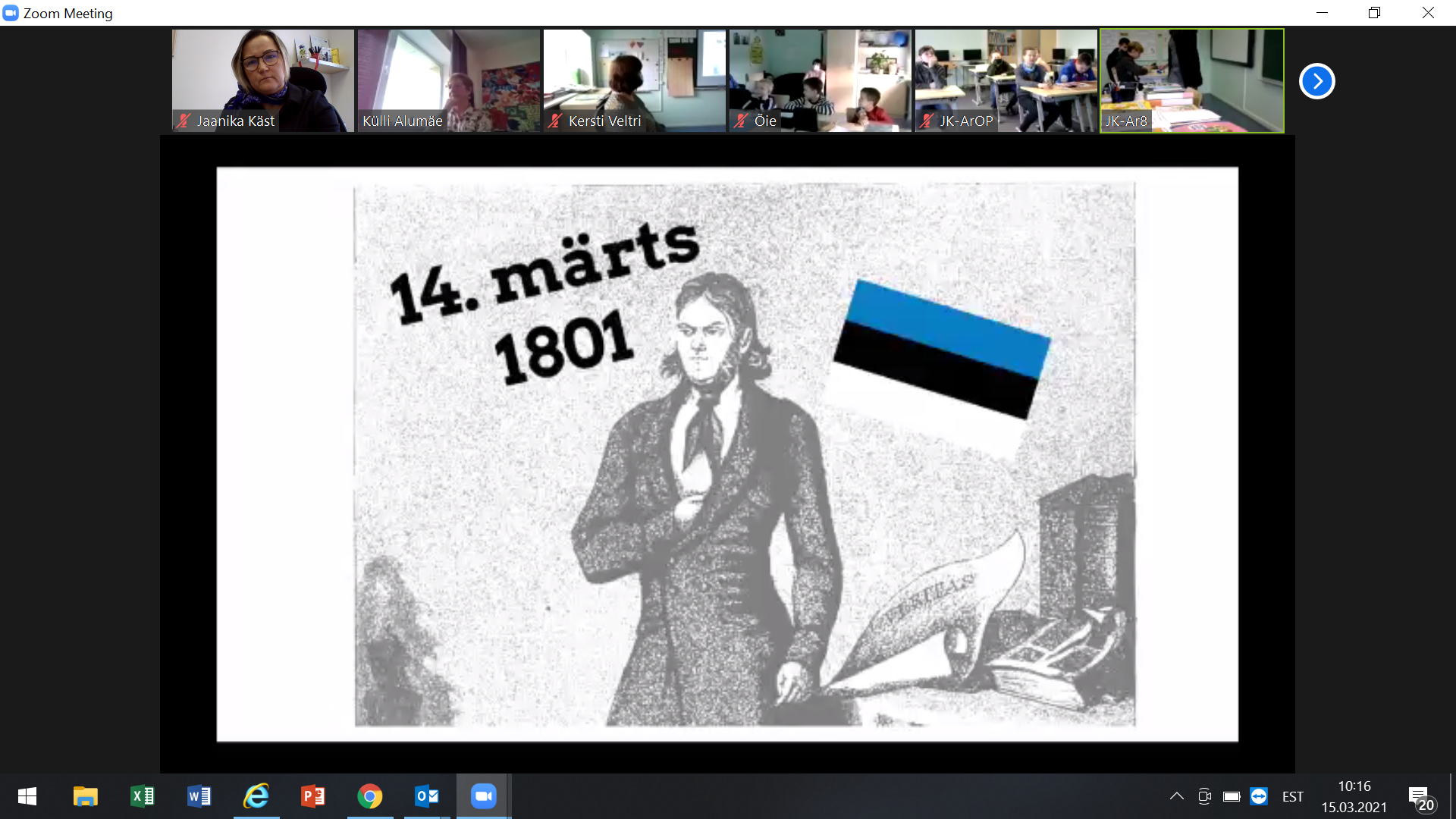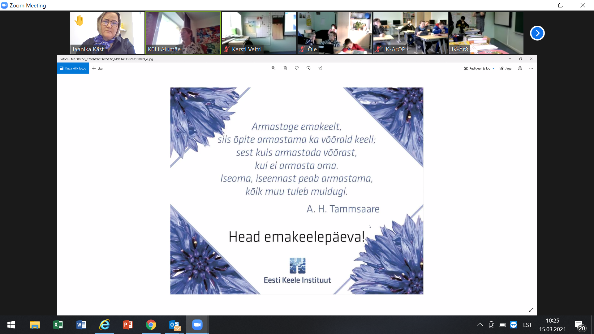 Emakeele päeva tähistasime 15. märtsil. Me teadsime, et meid oodatakse Zoomi kokkusaamisele. Aega võttis, aga asja sai: lõpuks olid kõik klassid kohal. Esimene kord ja õnnestus!