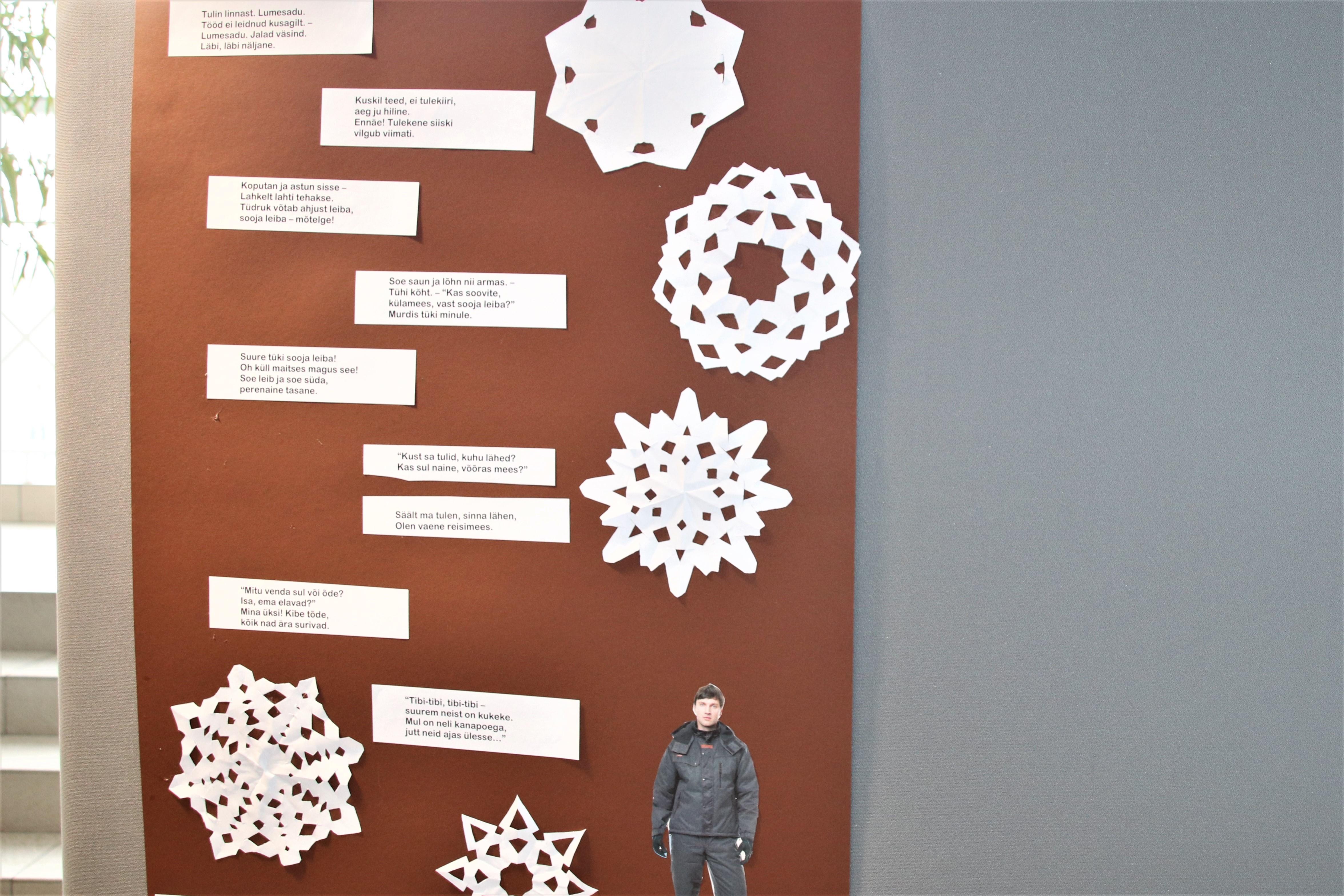 Huvijuht Külli rääkis emakeelepäevast, K.J. Petersonist, traditsioonidest ja muust, kasutades paljude abi. Näiteks Kristjan Jaagu luuletuse luges Mikk Mikiver. Netilapsed rääkisid meie noorelt lahkunud kirjamehe elust. Juhan Liivi „Rändaja“ sõnadele tehtud lauluga esines Peeter Volkonski. Külli rõhutas selle tähtsus, et nii väikesel rahvusel nagu eestlased on oma emakeelne haridus ja kultuur.