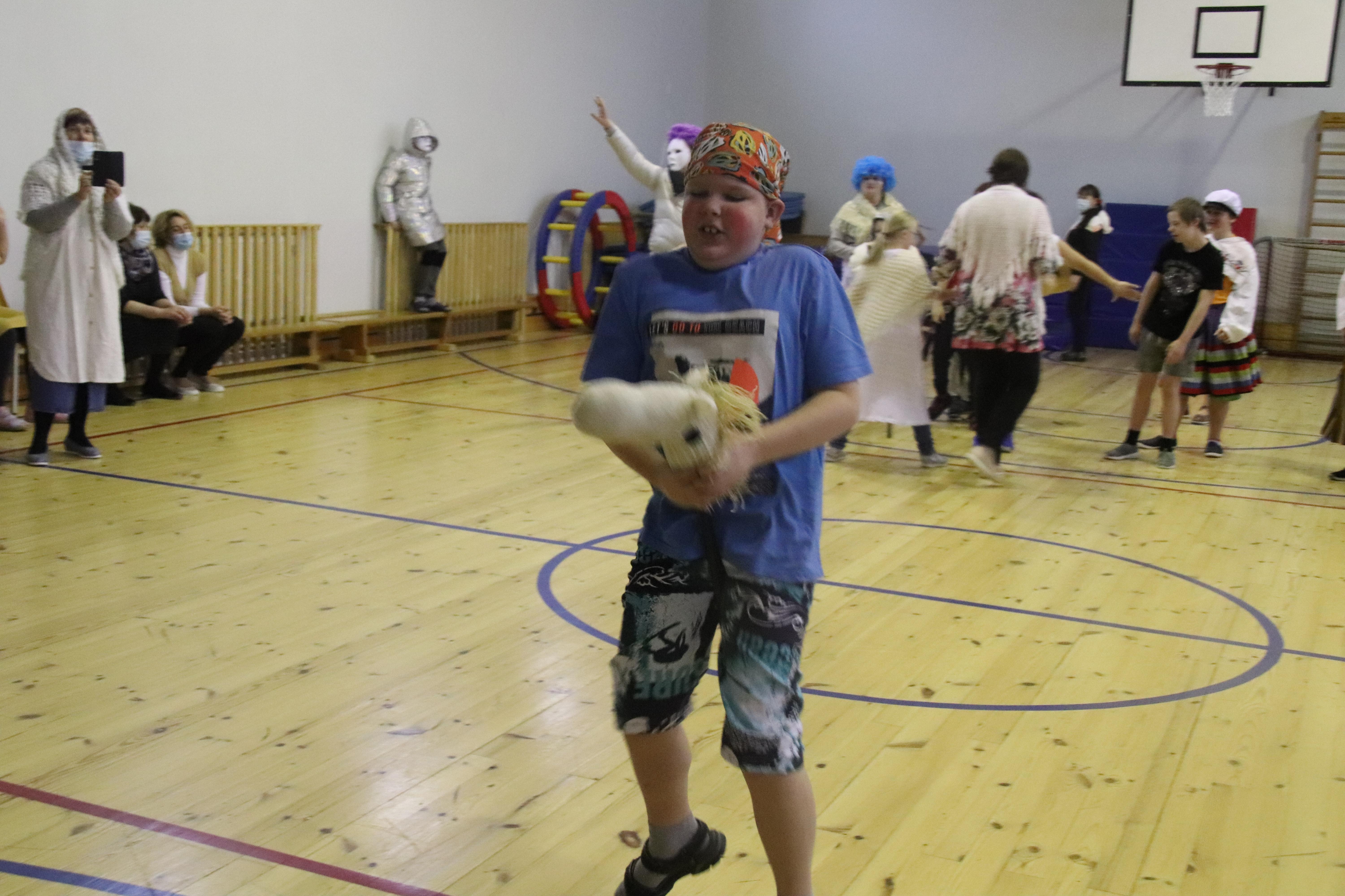 Mitmed õpetajad olid vaeva näinud, et end ja oma õpilasi päeva vääriliselt riietada ja ehtida. Kaunid valged riided, parukad ja mis kõik veel. Õpetaja Vapu oli valmistanud imekenad kepphobused. Tore, et meil niisugused õpetajad on.