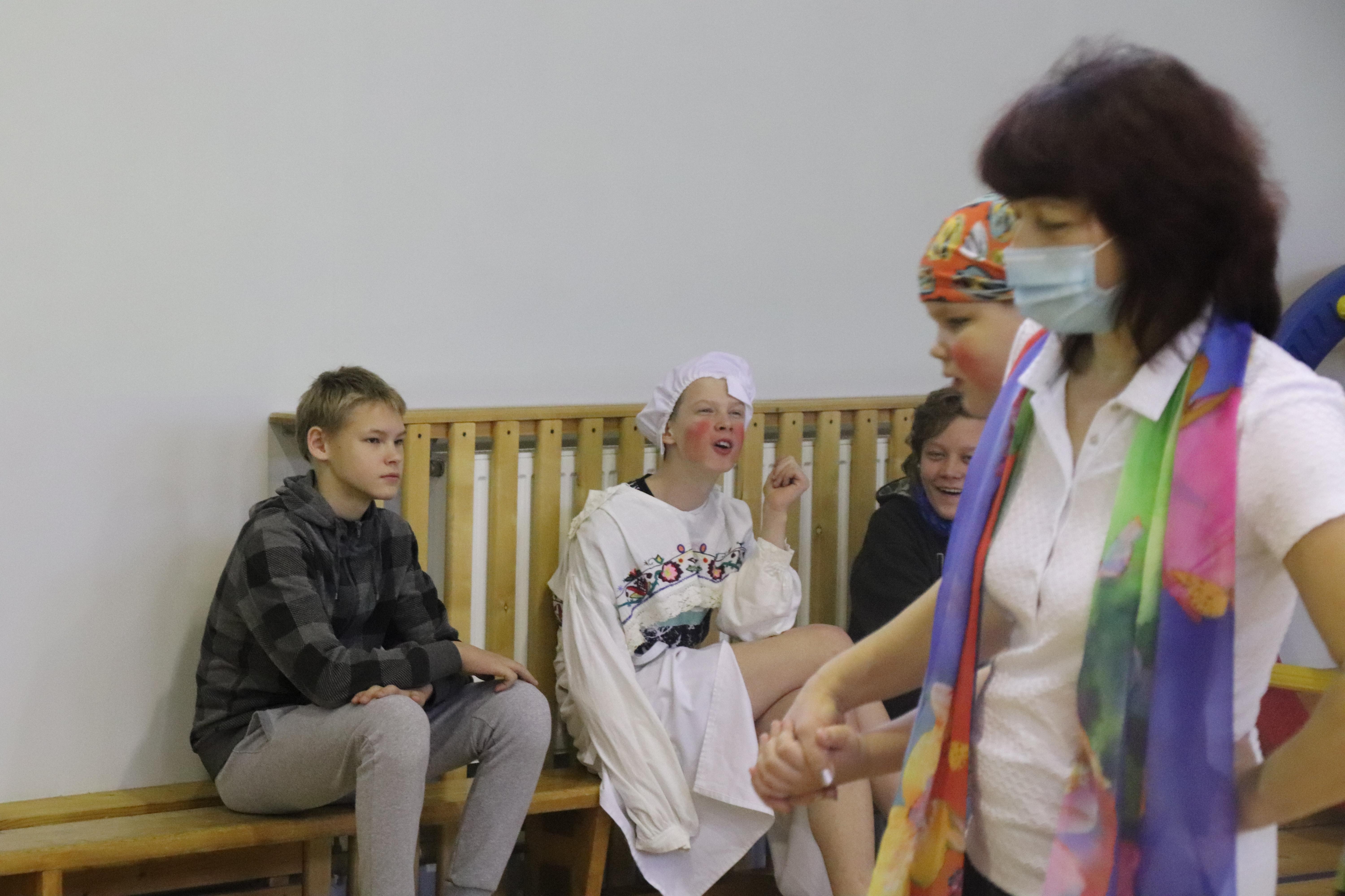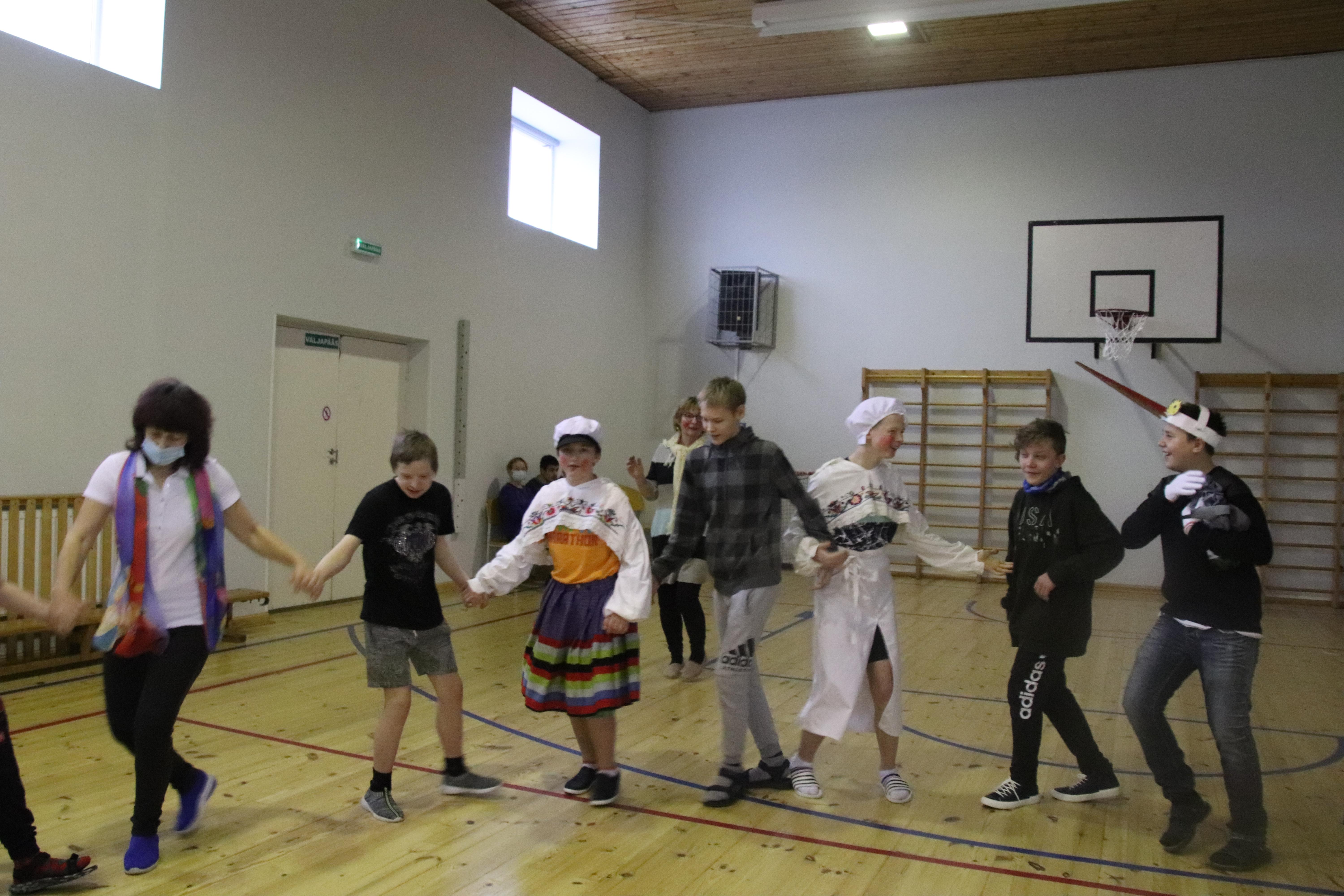 Lõpus osaleti laulumängudes. Kui programm oli läbi, aga tunni lõpuni veel veidi aega ja kadriema küsis, kas mängime veel, kõlas üksmeelne „jaa!“. Kahjuks pidid väiksemad sööma minema, sest koroona tõttu on meie laste söömine hajutatud pikemale perioodile. Saali jäänud lustisid täiega. Kui ära läksime, sai igaüks ka kommi.
