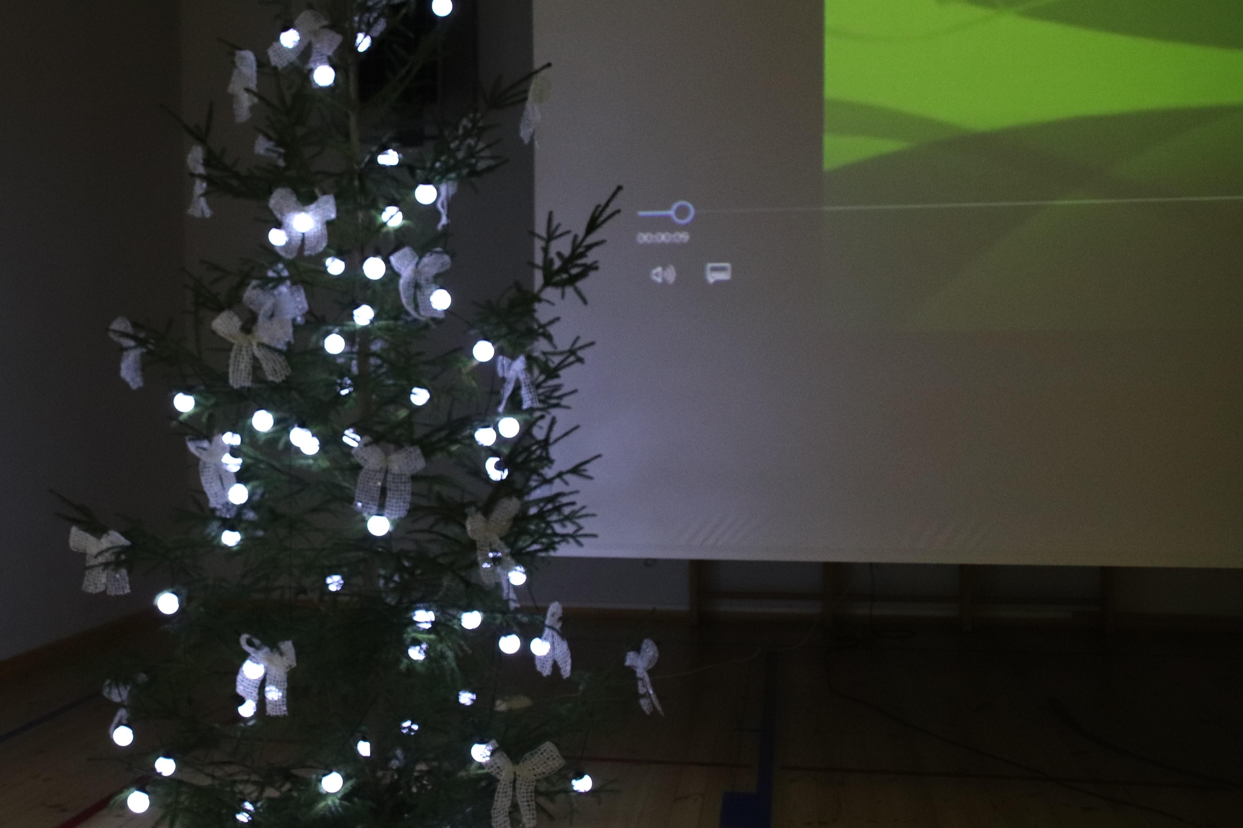 Täna tähistasime 3. adventi. Selleks oli näiteringi lastel ette valmistatud etendus, milleks oli Jaapani muinasjutt „VÄIKE VALGE DRAAKON“. Koroonaajale kohaselt näidati meile ekraanil kooli õues filmitud lugu. Selleks kogunesime saalis, mis oli kauni kuusega ehitud. Praegusele ajale kohaselt tegime seda neljal korral, et oleksime võimalikult hajutatud.