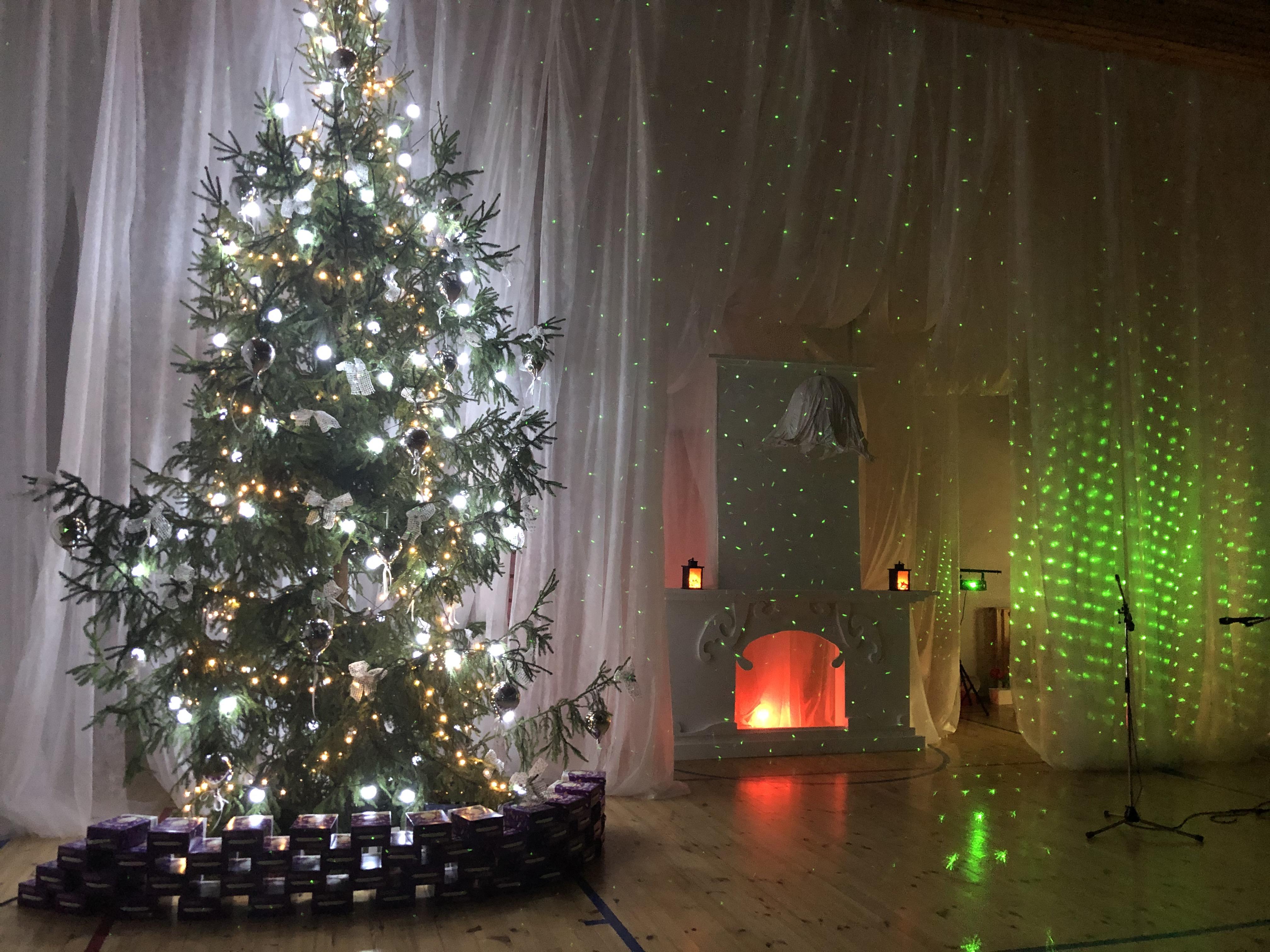Juba paar nädalat käis eriti hoogne jõulupeo ettevalmistus. Saali tekkisid valged taustakardinad, keskel valge kamin. Ja muidugi kuusk! Rääkimata proovidest, proovidest…