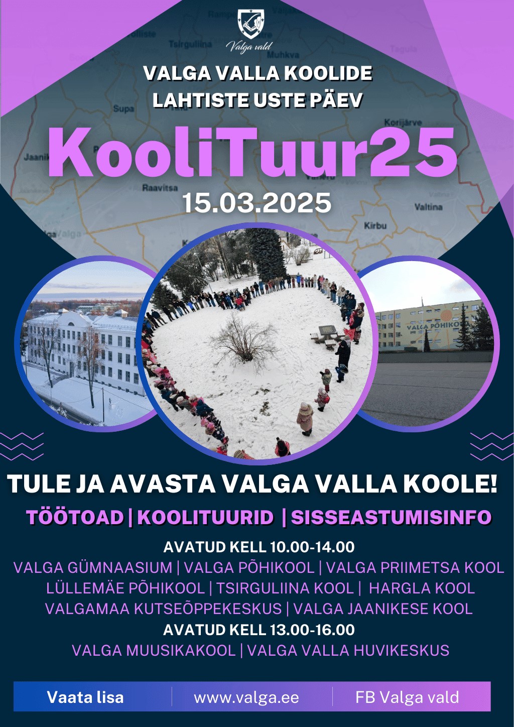 Meie kool on liitunud KooliTuur 2025 projektiga. 15.03 on lahtiste uste päev. Ava foto Viimati muudetud 10.03.2025.