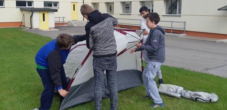 Seejärel toimus telgipüstitamise võistlus poisid versus tüdrukud. Neiudel läks telgi püsti panekuks ja mahavõtmiseks minuti võrra kauem aega, kui poistel.