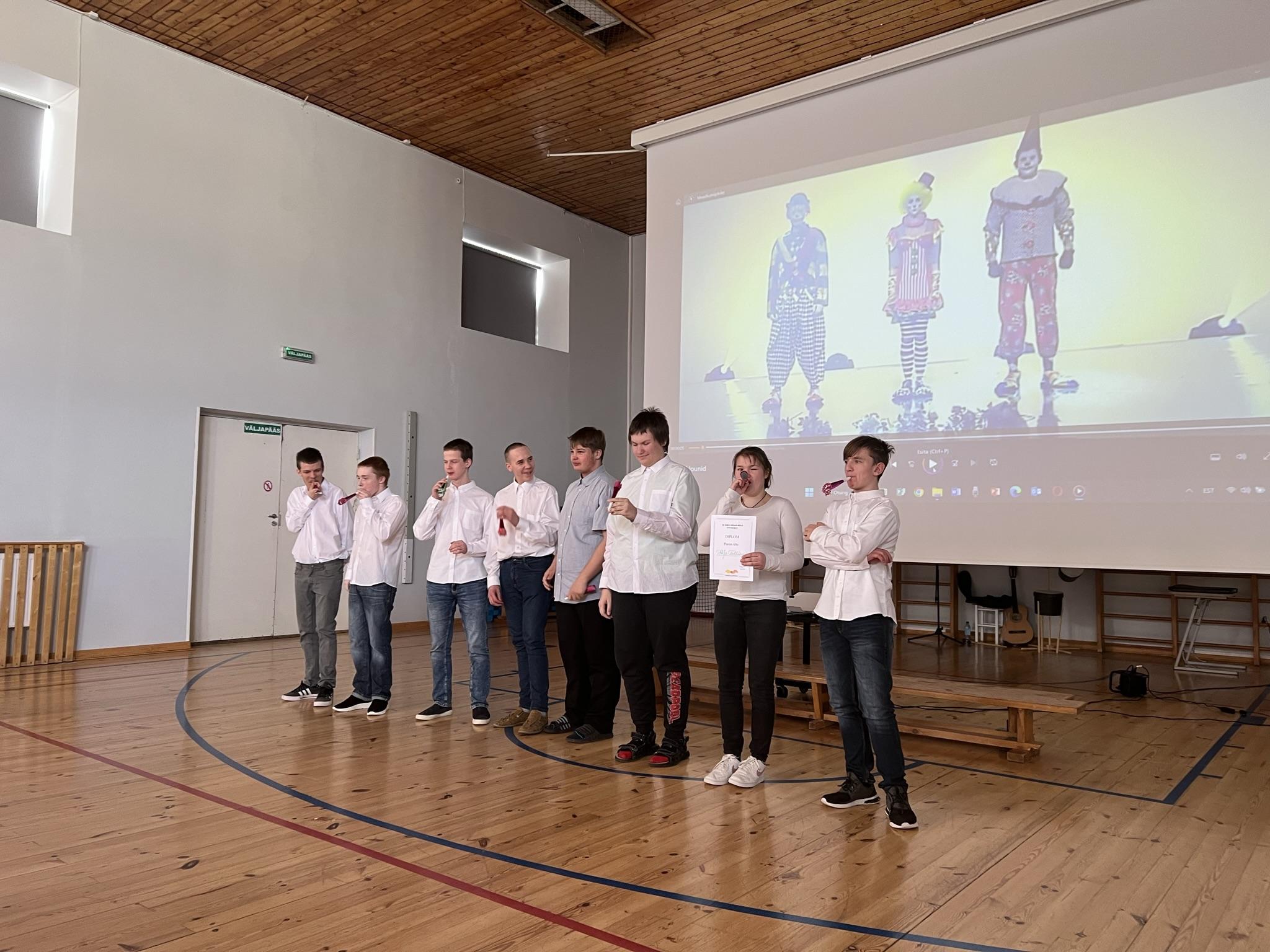 Šõud alustasid lustakad klounid ja pärast seda hoolitsesid ka selle eest, et kogu üritus sujuvalt kulgeks ning tänasid kõiki esinejaid tänukirja ja šokolaadiga. Eeskaval hoidis pilku peal range žürii, kes hindas eraldi igat esitust ja jagas siis punkte. Tegelikult oli meie žürii oma punktide jagamisega ikka väga helde, aga ka esitused olid kõik väga ägedad, nii et oli, mille eest punkte jagada. Lõpuks valiti välja 2 parimat esinejat žürii poolt ja ka publiku lemmikud. Meie parimad lähevad nüüd kooli esindama 18. aprillil juba koolidevahelisel võistlusel.