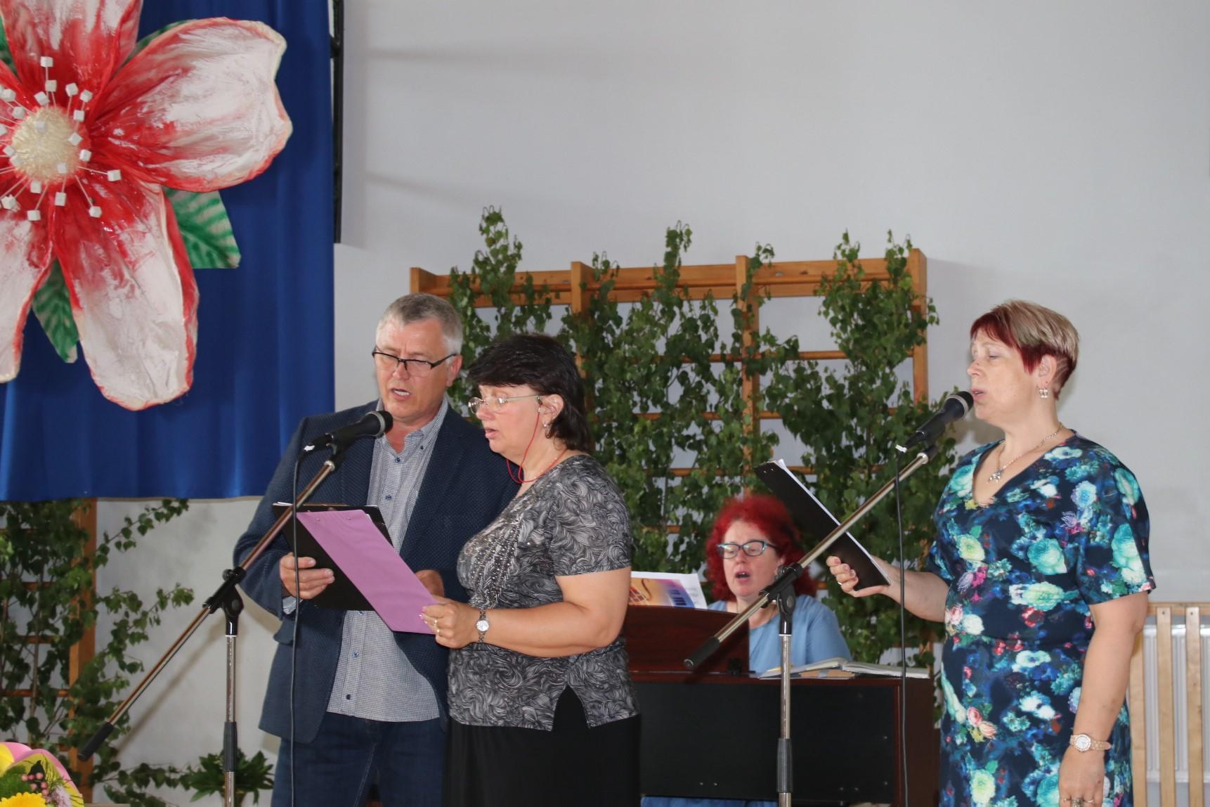 Hümni järel tulid lõpetajaid muusikaliselt tervitama vilistlased Tanel ja Aleksander (need kaks toredat noormeest olid ka ise omamoodi lõpetajad, sest läbisid sel aastal edukalt meie lisaõppe aasta). Siis esines segaansambel: õpetajad Õie, Janne ja Jüri.