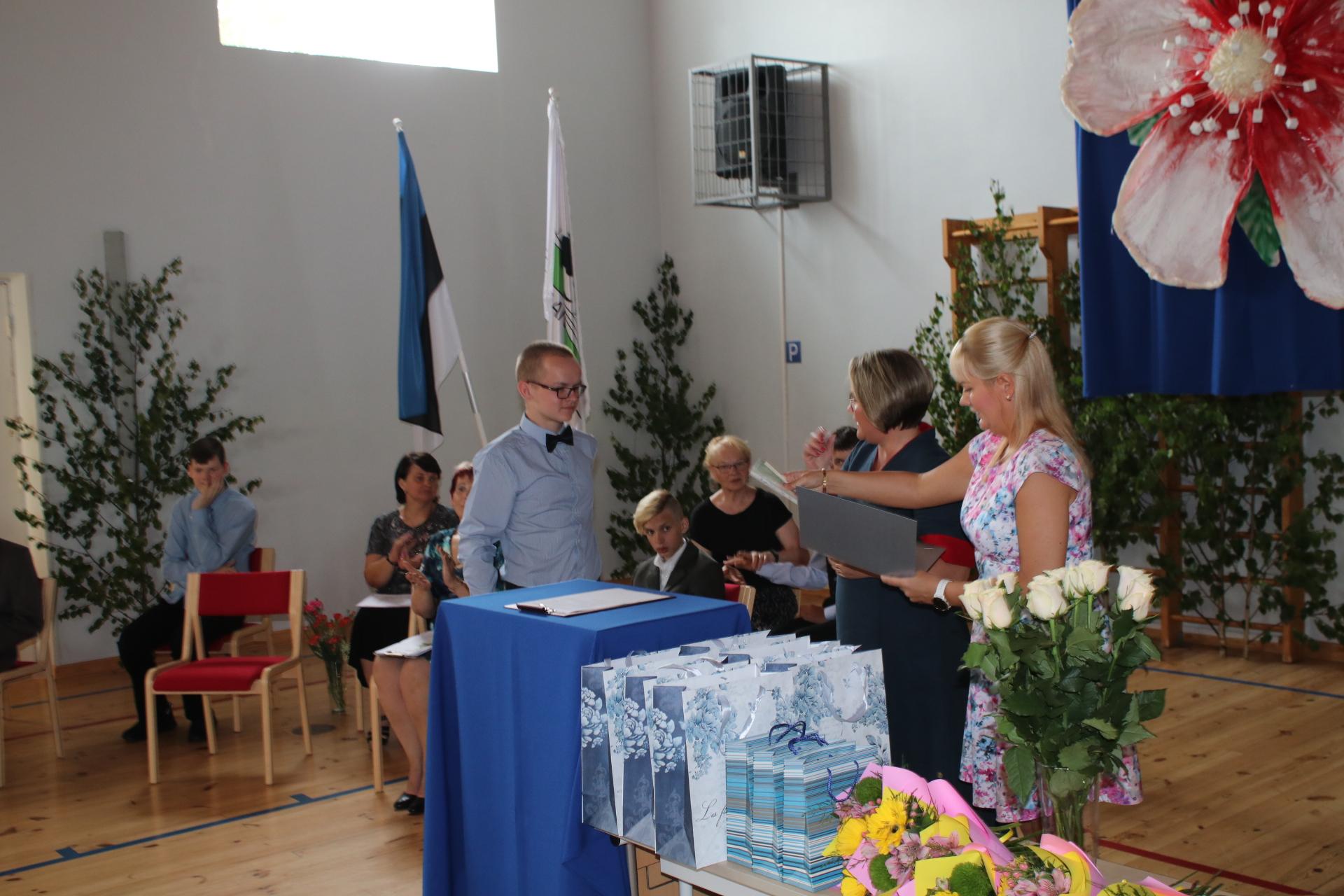 Nüüd sai sõna kooli direktor Jaanika Käst, kes tänas lapsevanemaid ning pöördus personaalselt iga lõpetaja poole. Seejärel andis ta kõigile 6 noormehele kätte lõputunnistused ning lisaõppe lõpetajatele tunnistused. Igat neist õnnitleti kooli poolt (lilled ning kingikott kooli kruusi ja mälupulgaga kooliaastate fotodest), aga lilli olid toomas ka pereliikmed, sõbrad, õpetajad, kasvatajad jt.