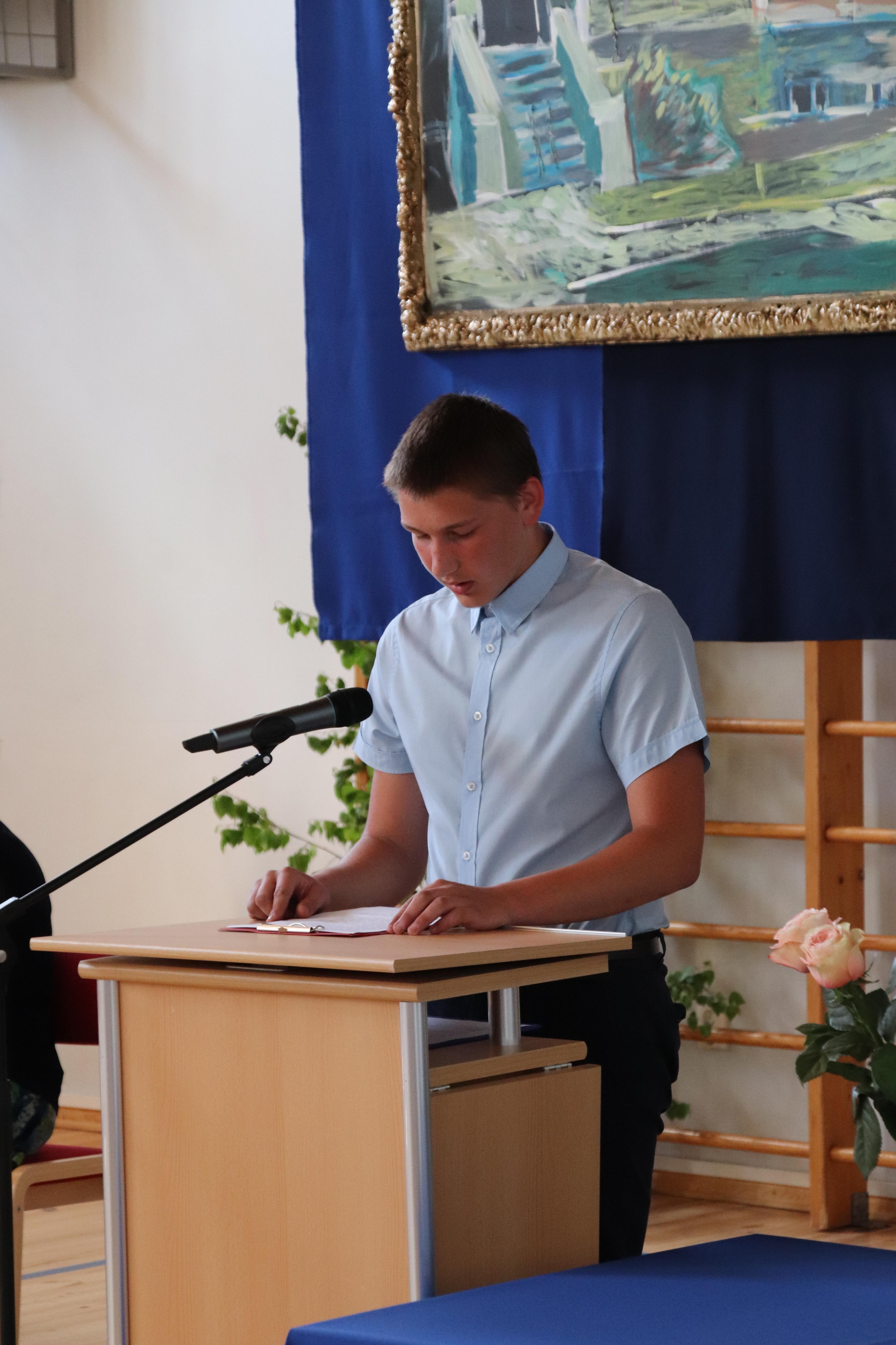 Seejärel sai sõna kooli direktor Jaanika Käst. Ta meenutas kõigi lõpetajatega seoses midagi südamlikku ja andis edasi oma parimad soovid neile. Loomulikult pidas direktor meeles ka lapsevanemaid neid tänades. Kõik noored on armsad, kuid eriti väärib esiletõstmist Maksim, kes on olnud alati abivalmis, tulles lausa ise abi pakkuma, kui näeb vajadust. See teeb südame soojaks. Aga ta on ka tubli õppur. Ja tantsija, augustis sõidab Austriasse Eestit esindama.