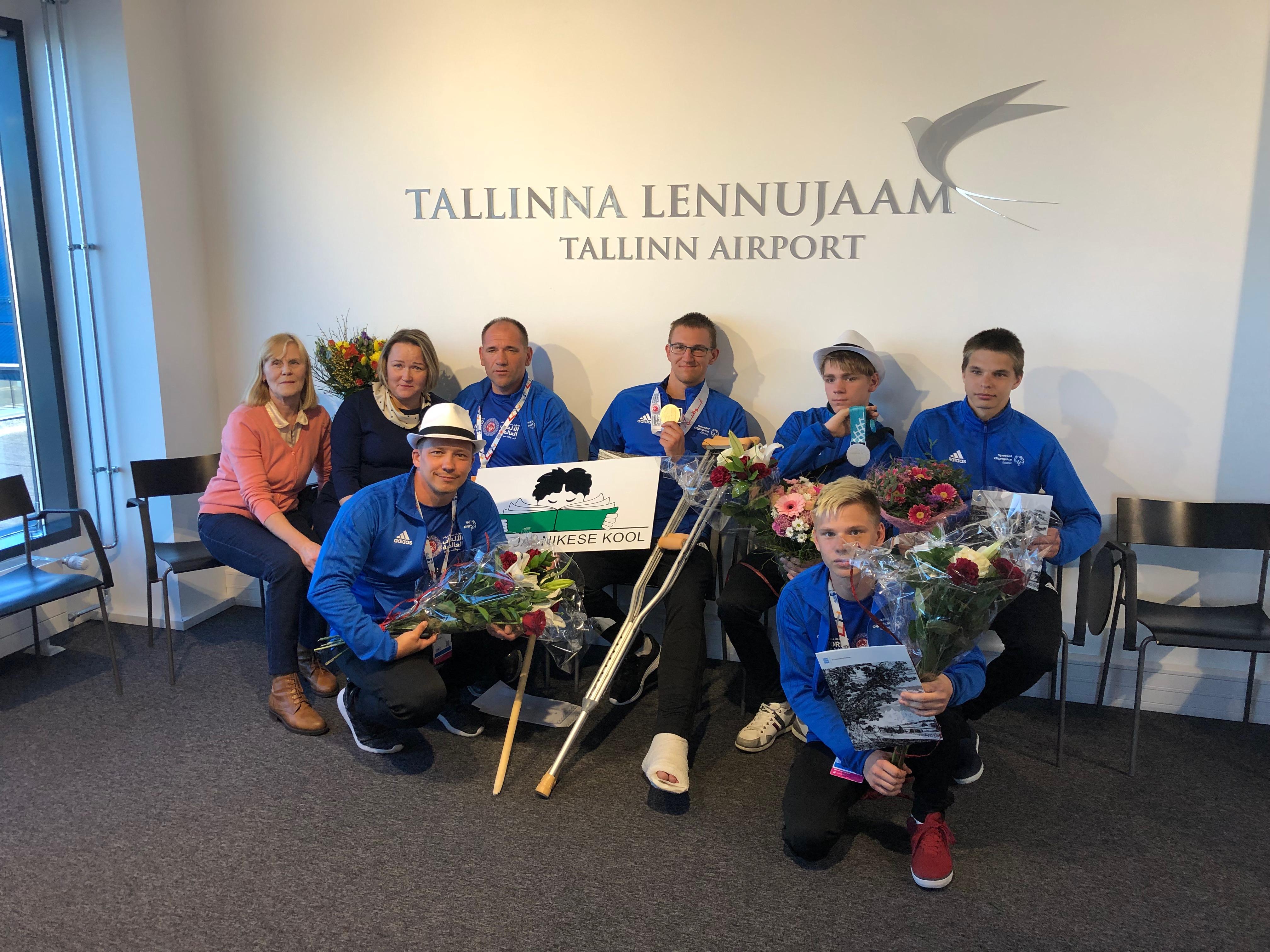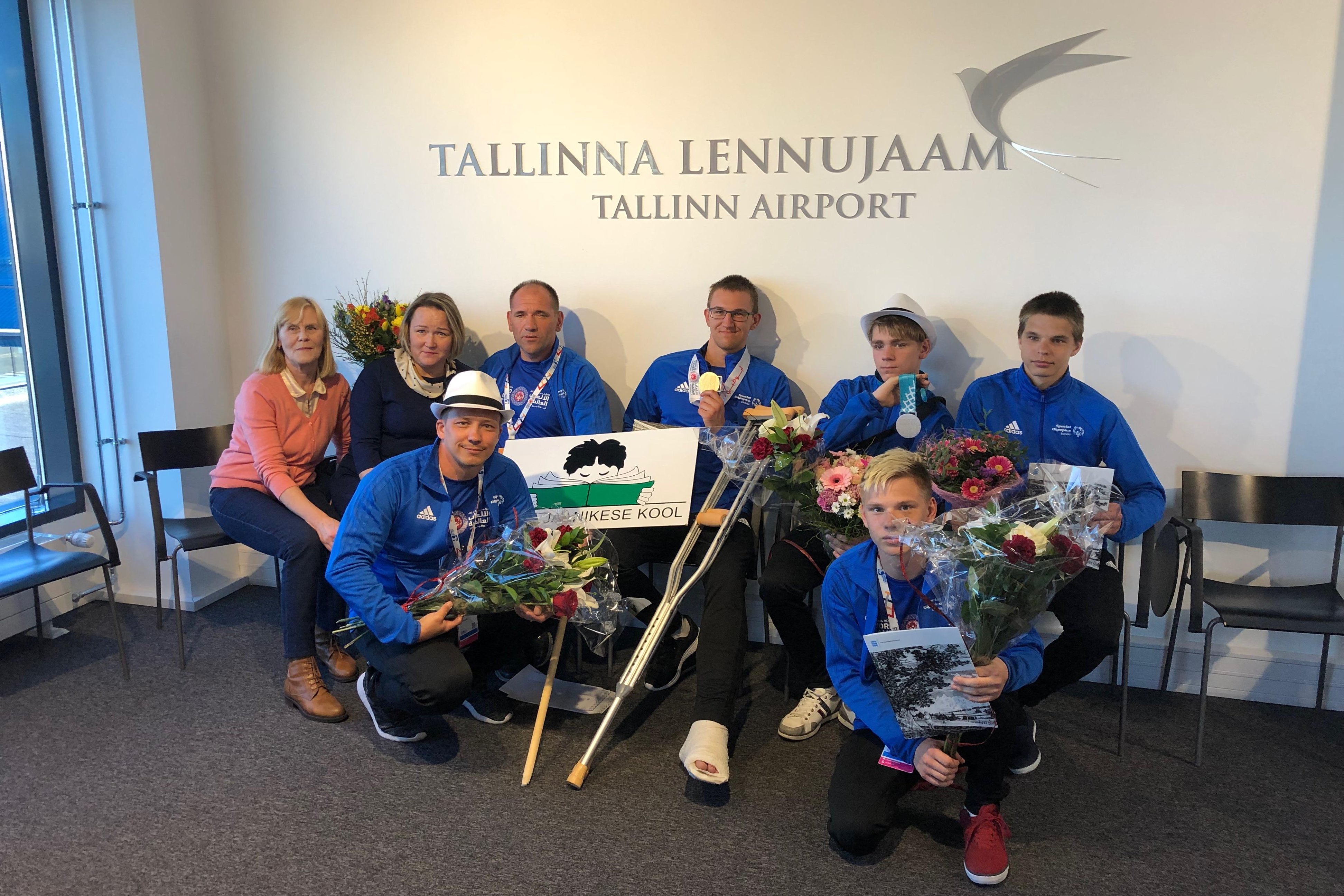 Meie kooli sportlasi tervitasid Tallinna Lennart Meri nimelises lennujaamas direktor Jaanika Käst, õppejuht Mai Talu, huvijuht Merike Mõttus ning õpetaja Maret Lill.