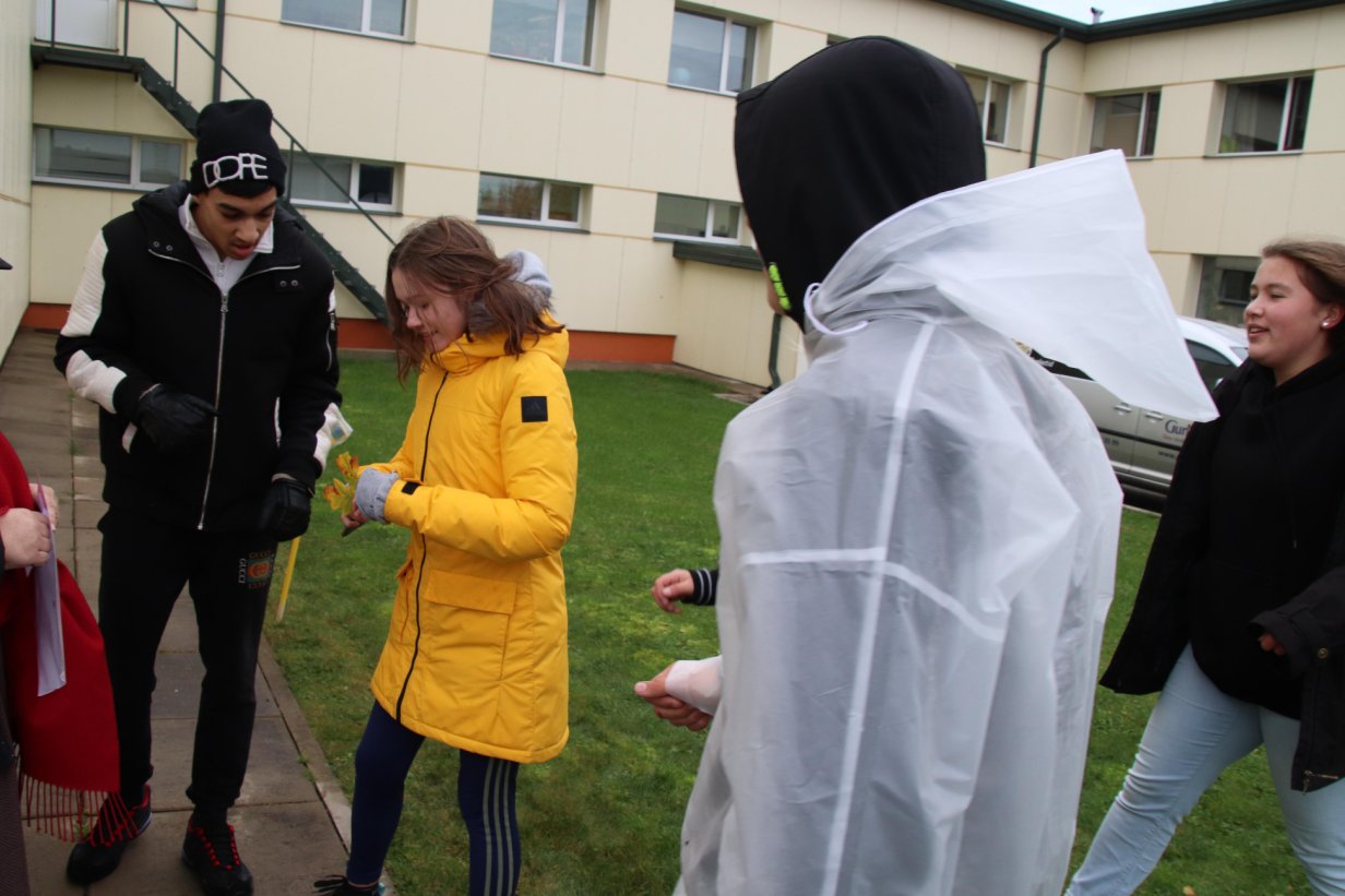 Vaatamata ilmataadi vempudele toimus kooli fuajees lustlik start. Eelnevalt riietati lapsed soojalt, varustati vihmavastase varustusega-keebid ja vihmavarjud! Iga meeskond sai plaani koolihoovi objektidega ja kontrollpunktide asukohtadega. Kõige tähtsam on õige varustus, riietus ja hea tuju. Pole olemas halba ilma, on vaid valesti valitud riietus!