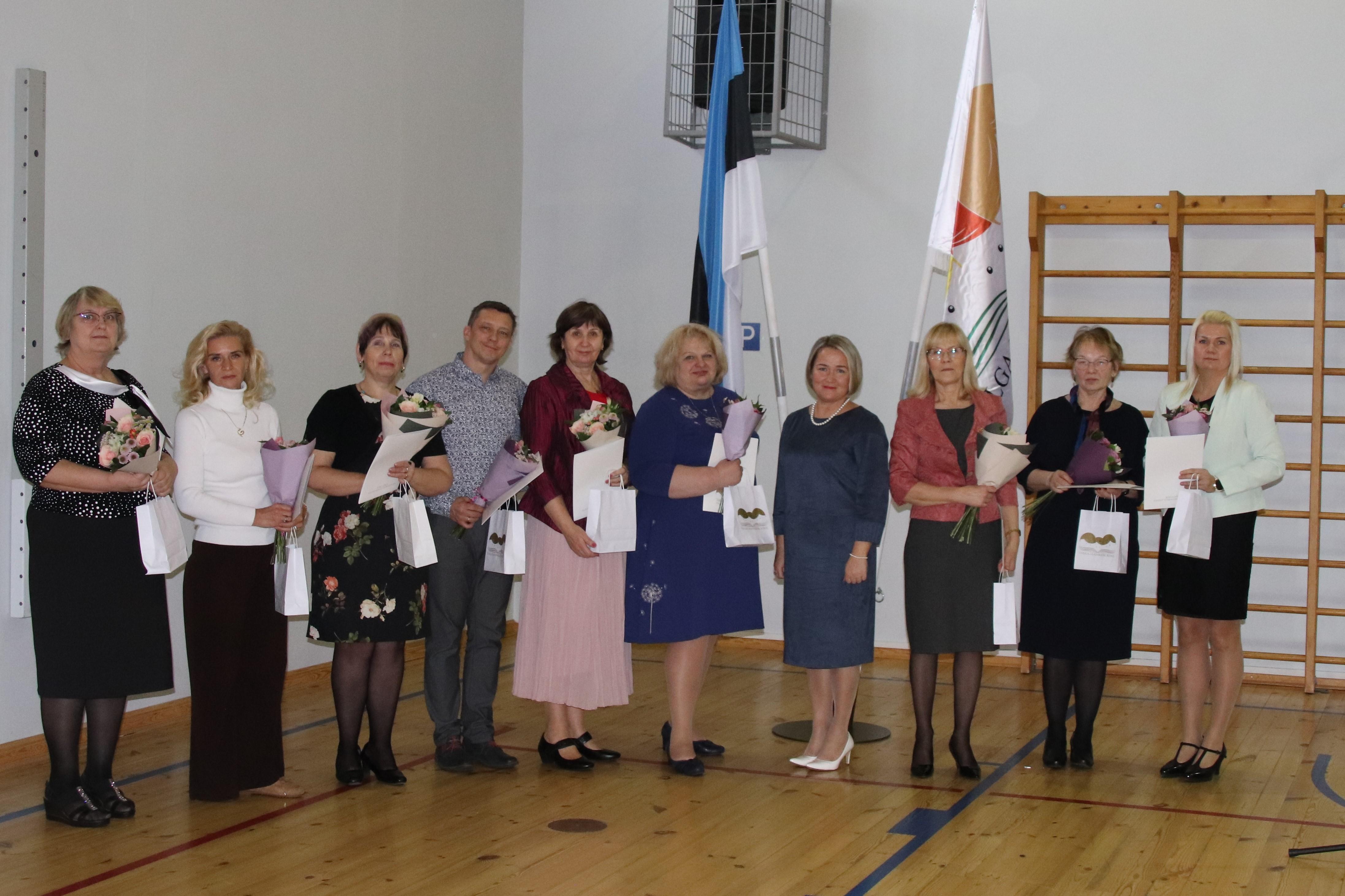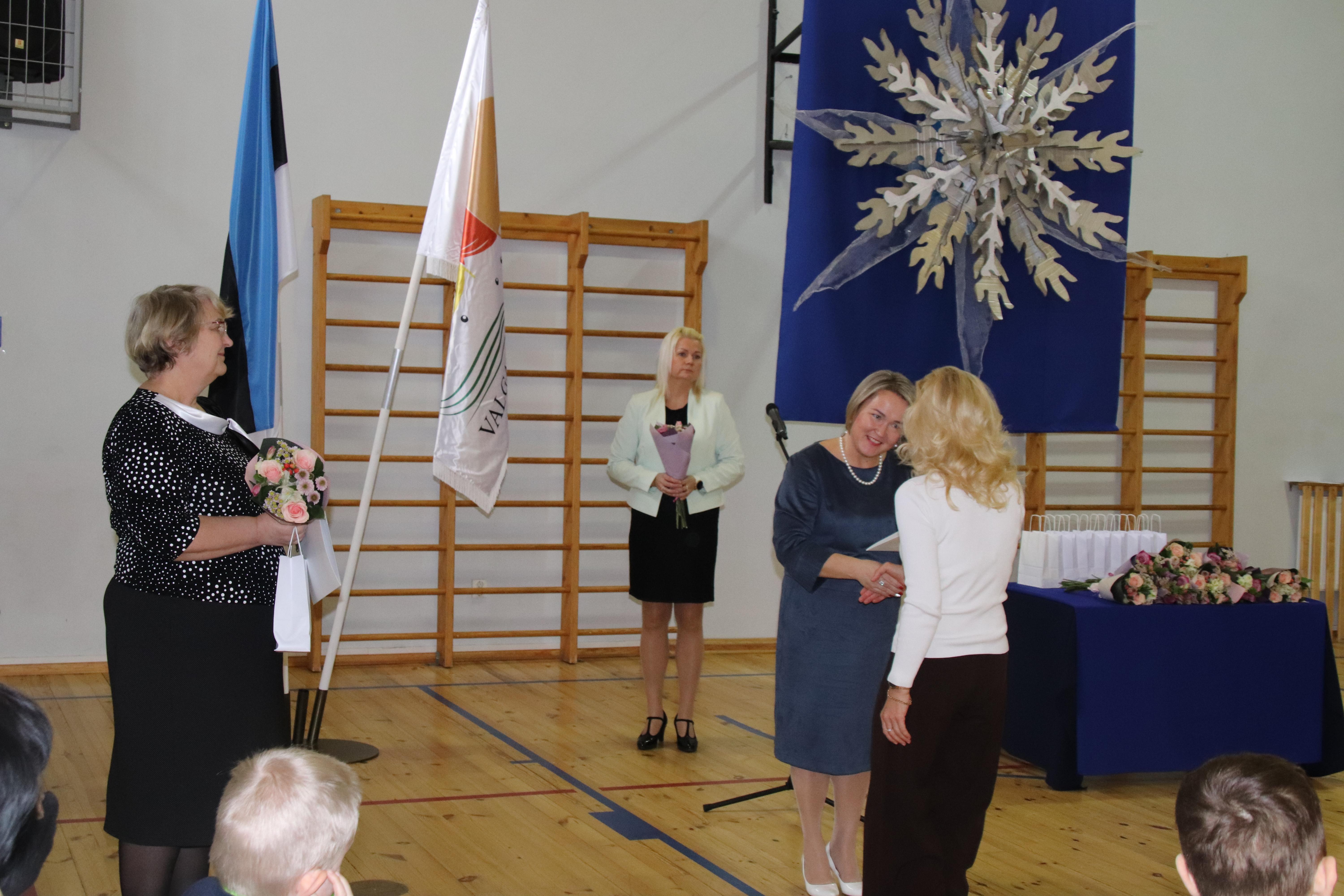 Seejärel sai sõna direktor Jaanika. Traditsiooniliselt anti meie kooli õpetajatele ja töötajatele tööjuubelite puhul tänukirjad, lilled ja meened. Kaks neist – õpetajad Jelena Barteneva ja Veera Pavlenko on koolis töötanud lausa 25 aastat! Super tulemus!