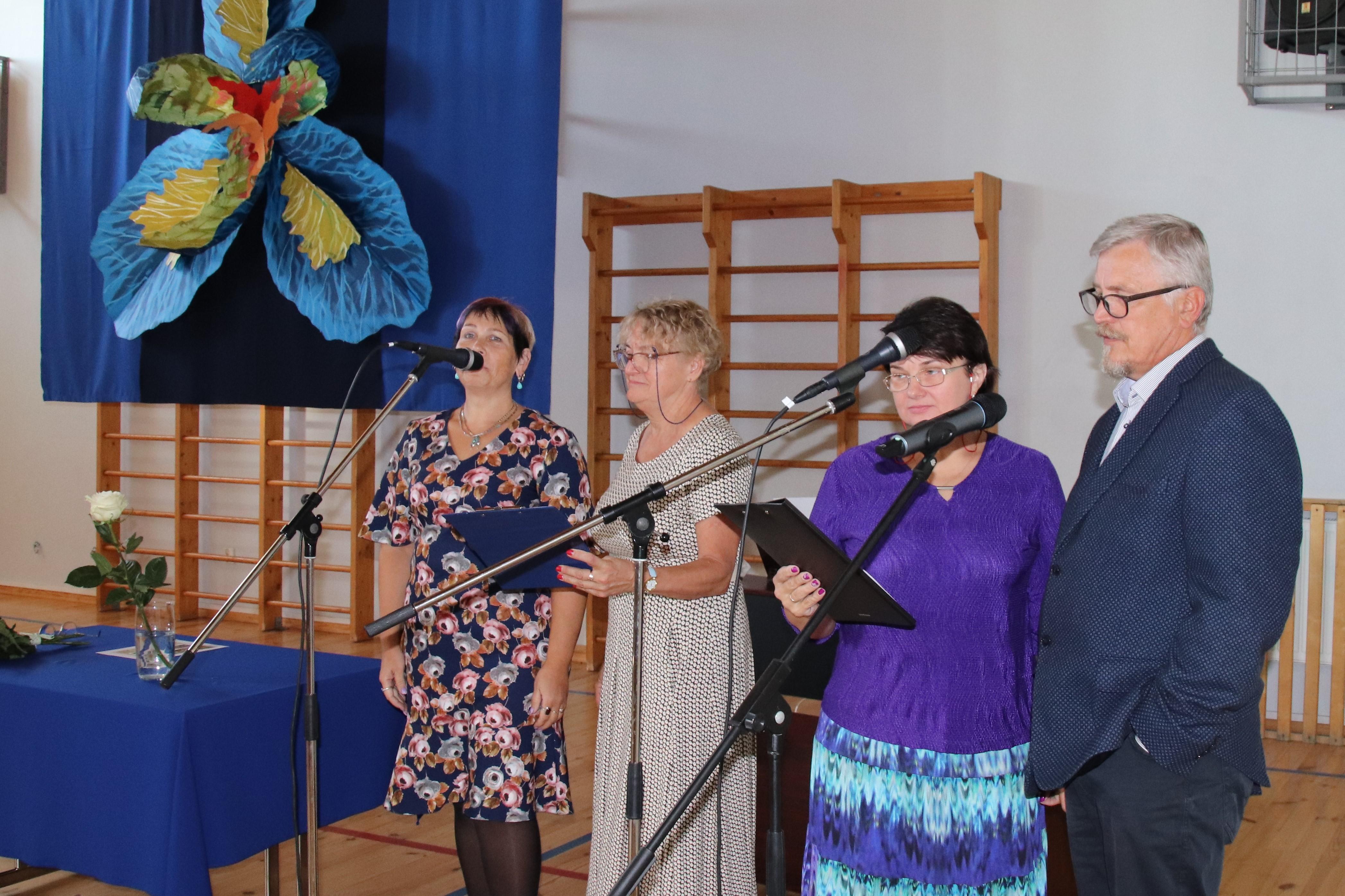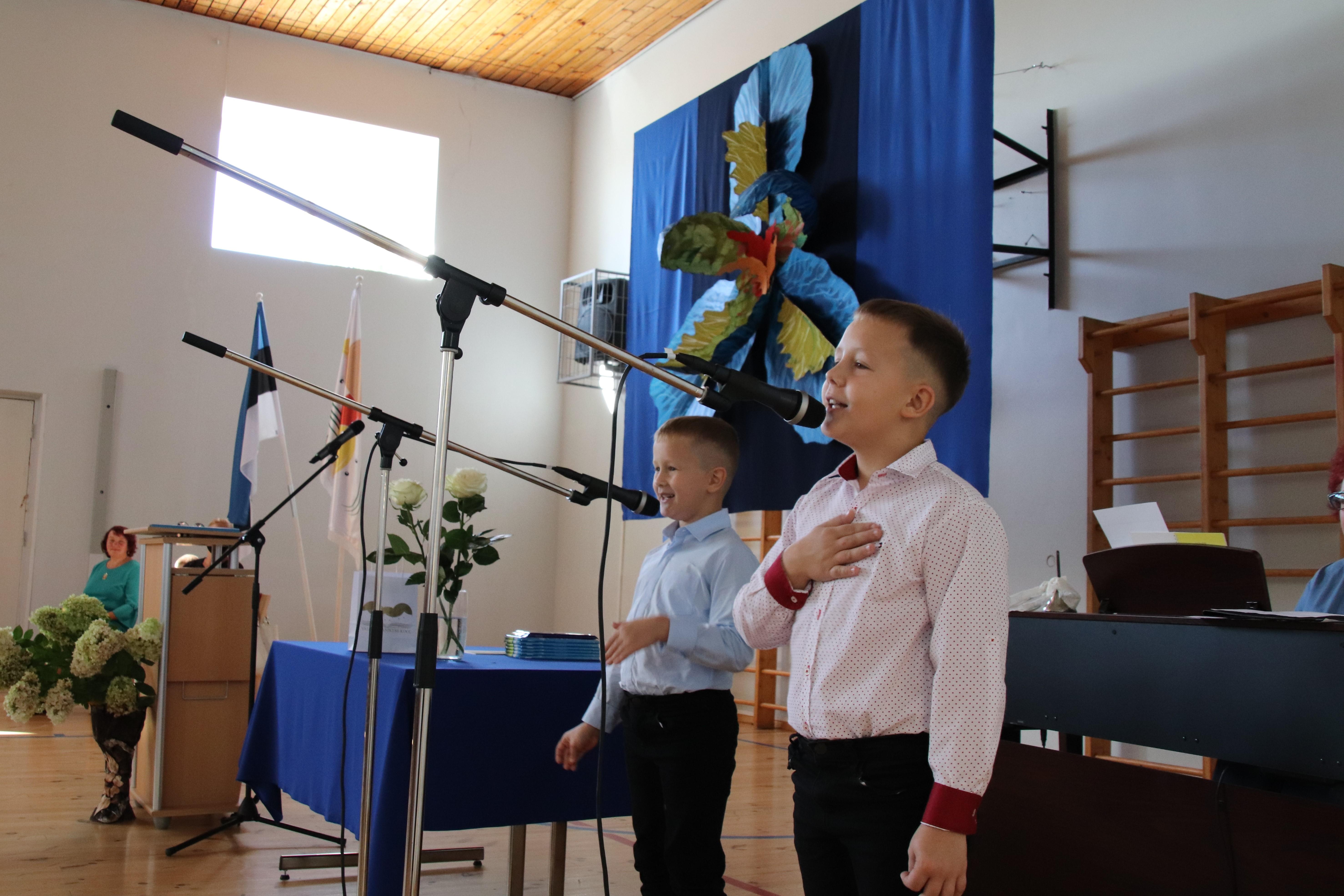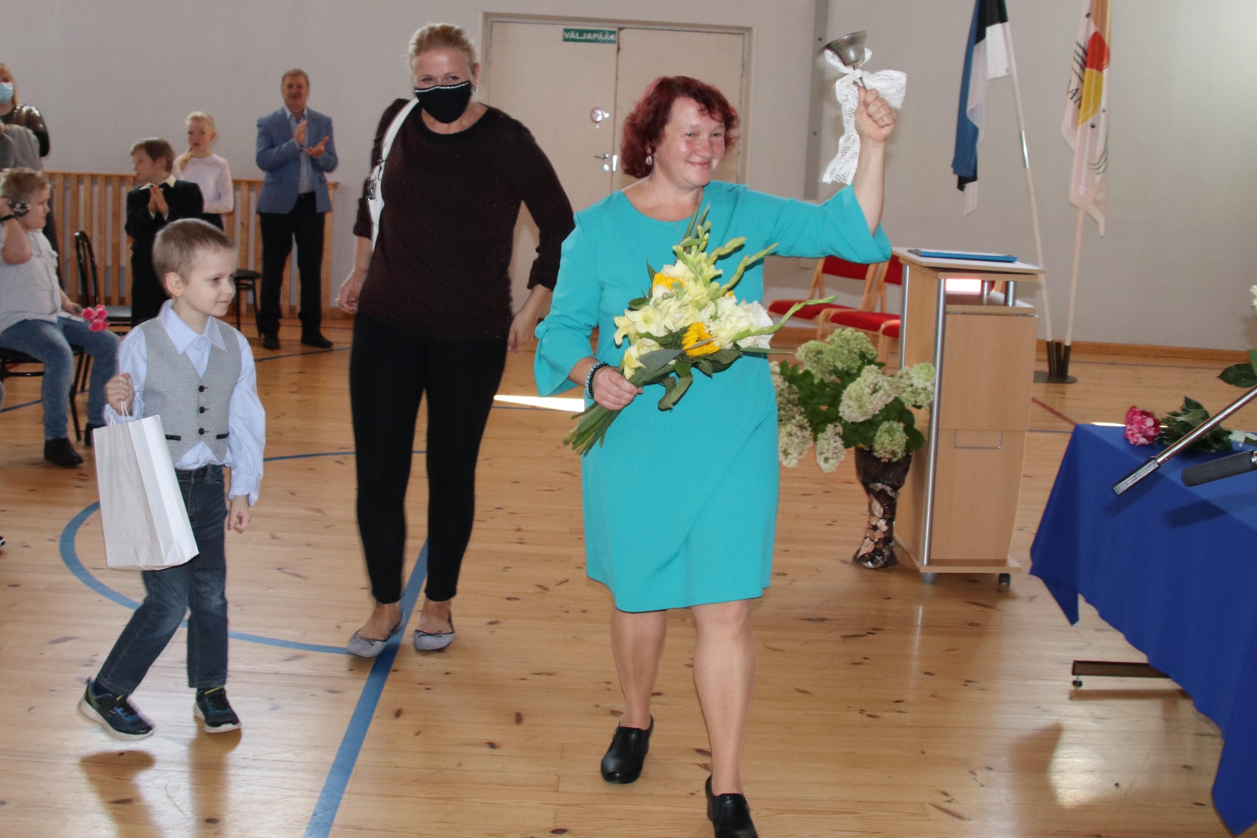 Direktor andis kingituse uutele õpilastele, lilleõie said nende õpetajad, samuti kooli tööle asunud uus õpetaja abi Laivi.