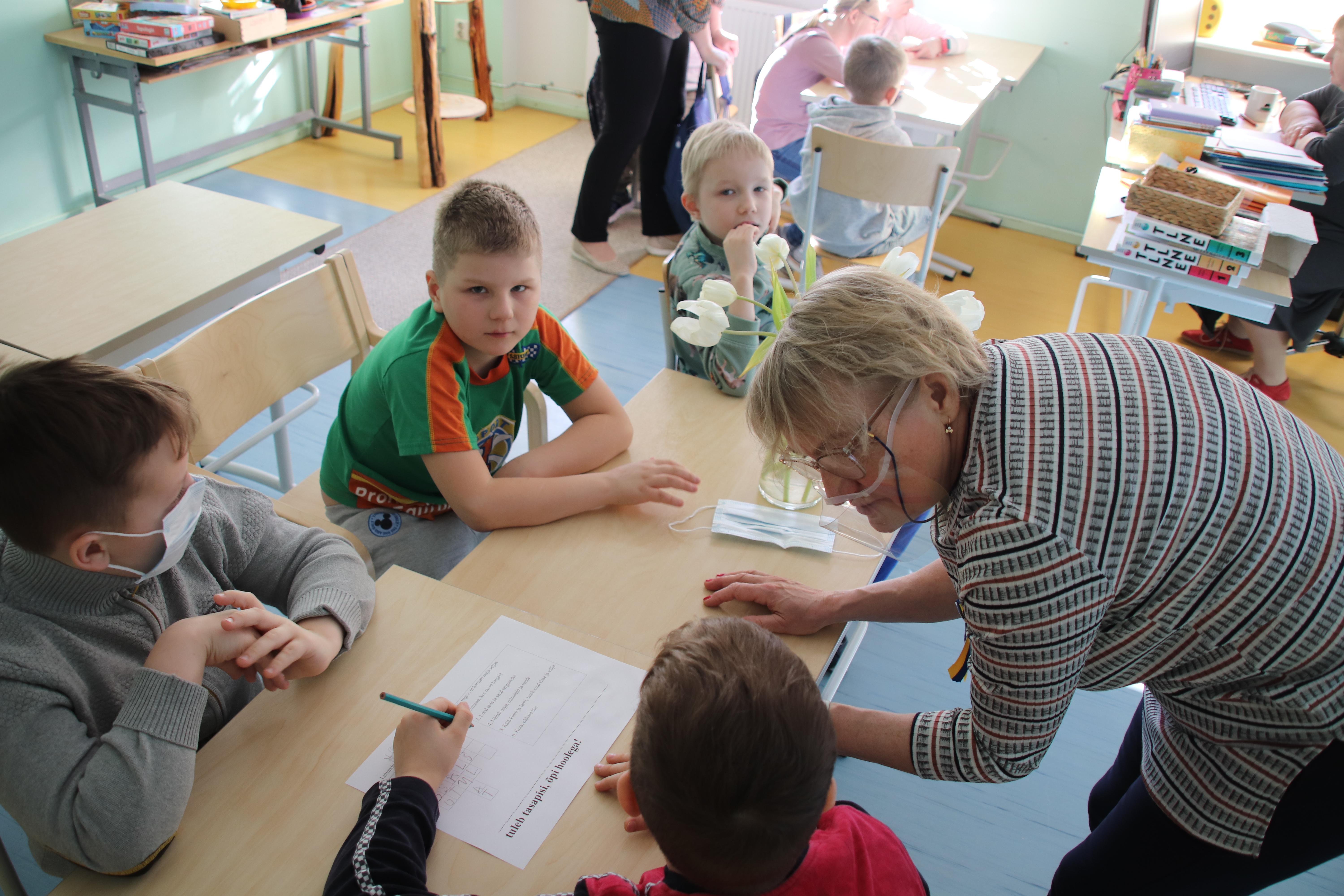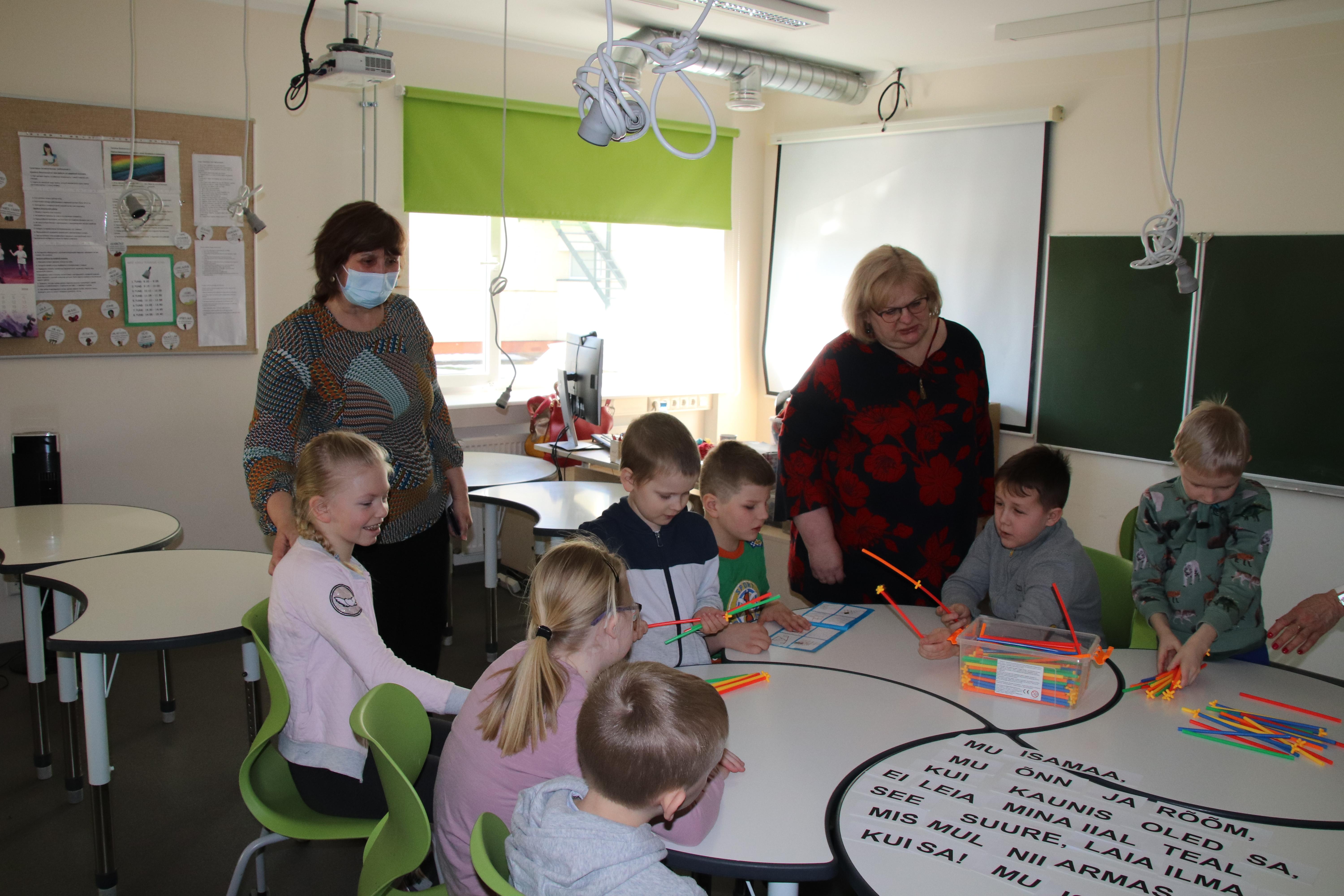 Õpetaja Vapu töötoas olid laual paberitele trükitud eestikeelsed sõnad ning nendest panime kokku meie riigi hümni esimese salmi. Hästi kiiresti tulid Tauril hümni sõnad meelde.