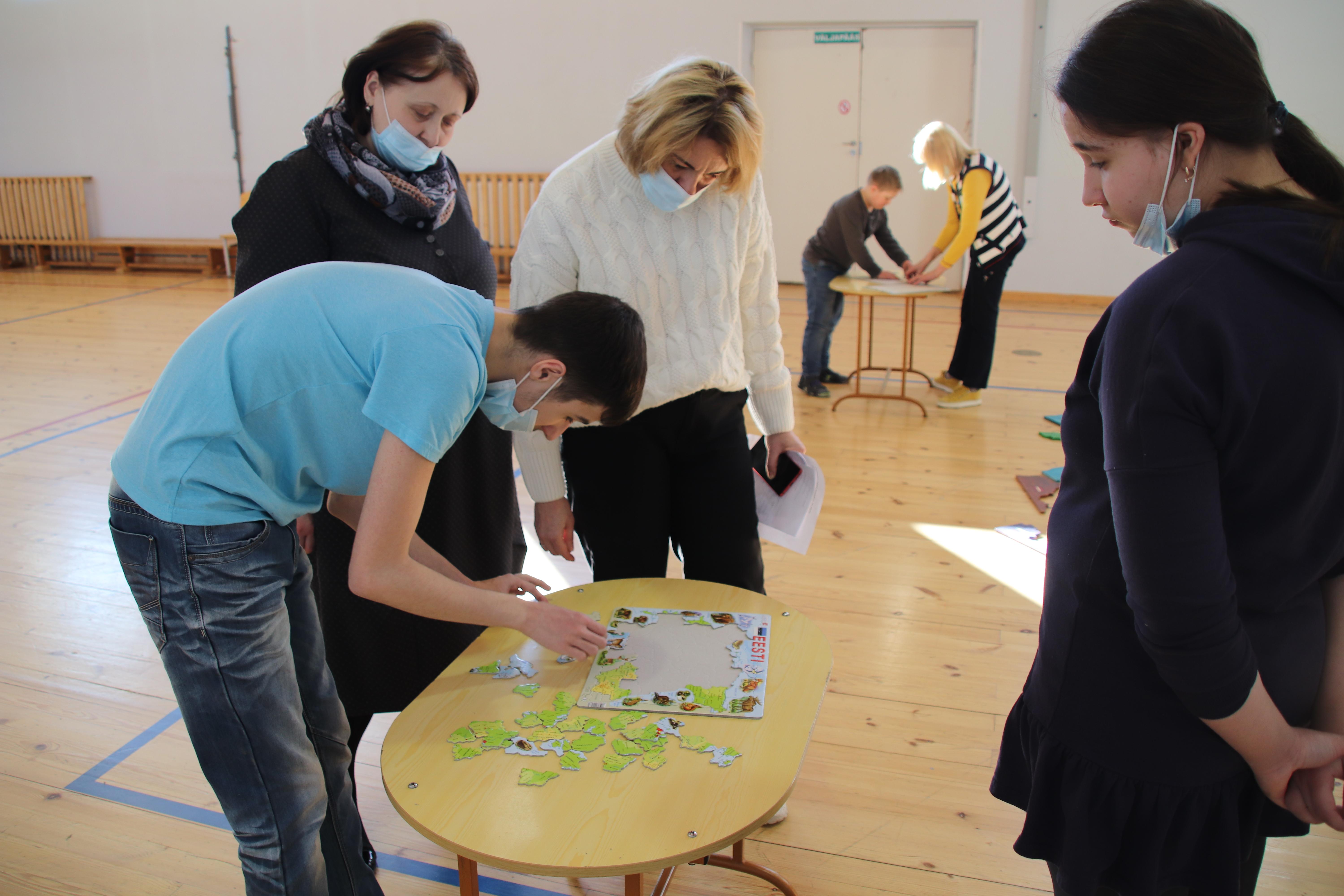Õpetaja Mai töötoas oli palju erinevaid pusletükke, mille seas jäid esmalt silma Eesti linnade nimed. Pusletükke sobitades saime kokku Eesti kaardi ning lähimad naaberriigid.