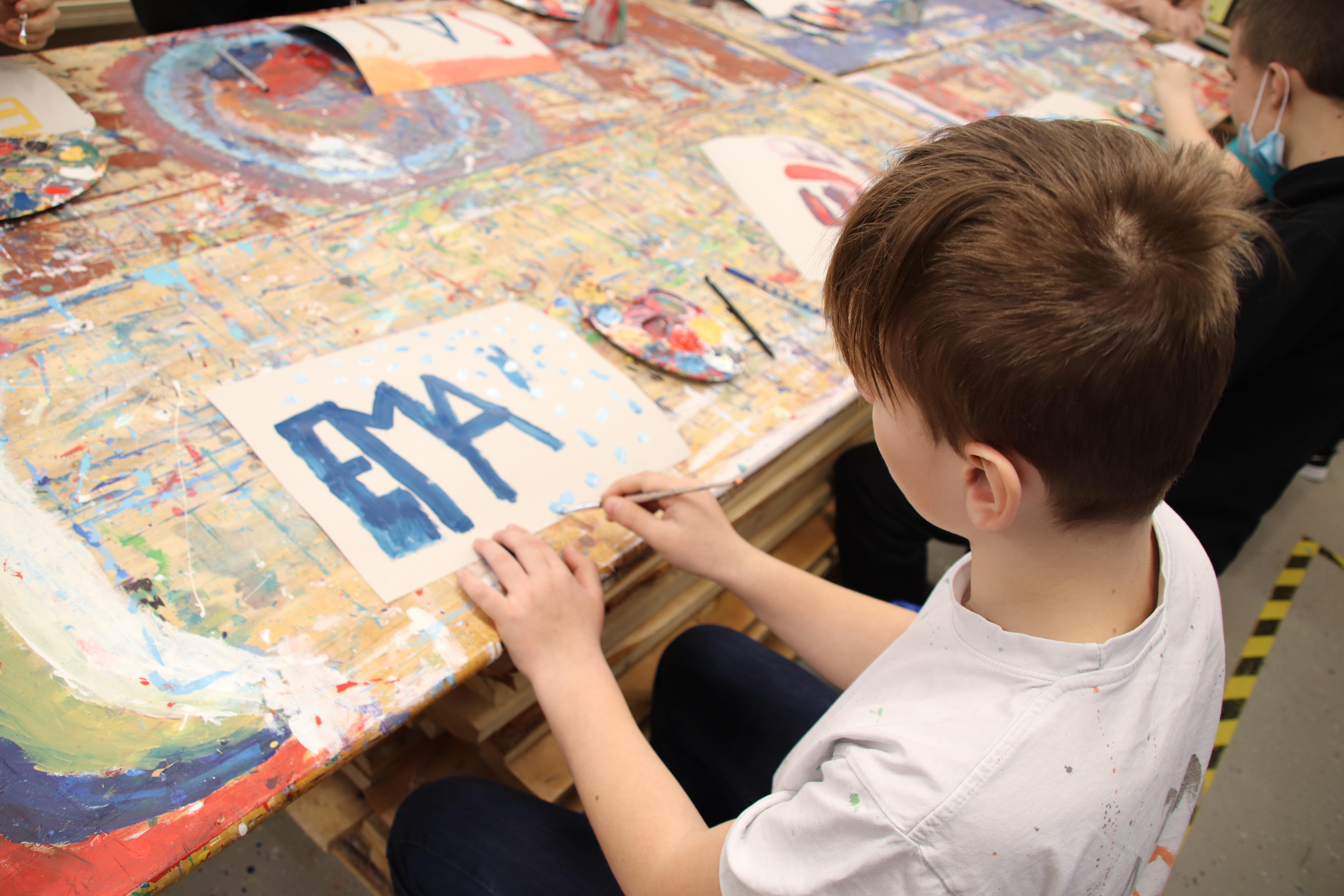 Õpetaja Jüri töötoas maalis igaüks endale meeldivate värvidega suurele paberile ühe ilusa eestikeelse sõna. Maaliti erinevaid ilusaid sõnu: ema, auto, emme, kevad, sõber, aitäh, helikopter.
