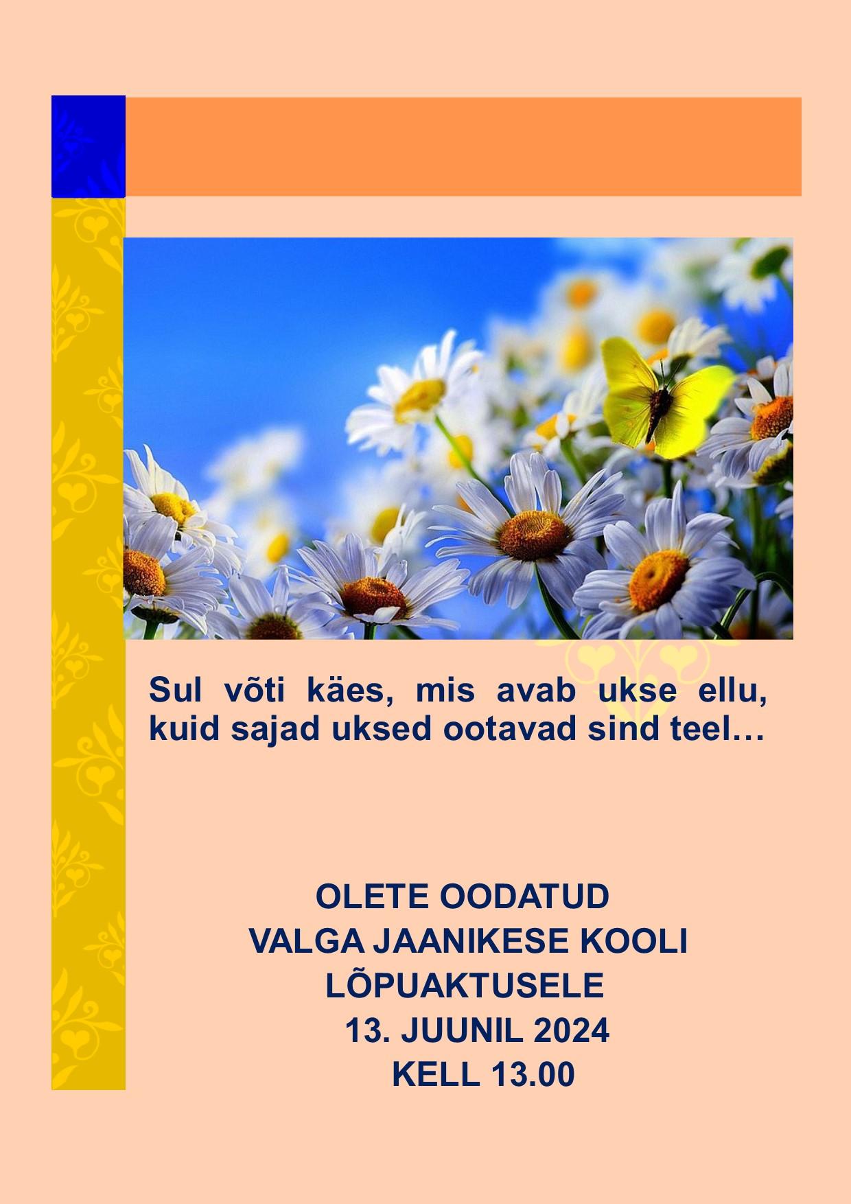 Olete oodatud Valga Jaanikese Kooli lõpuaktusele 13. juunil kell 13.00