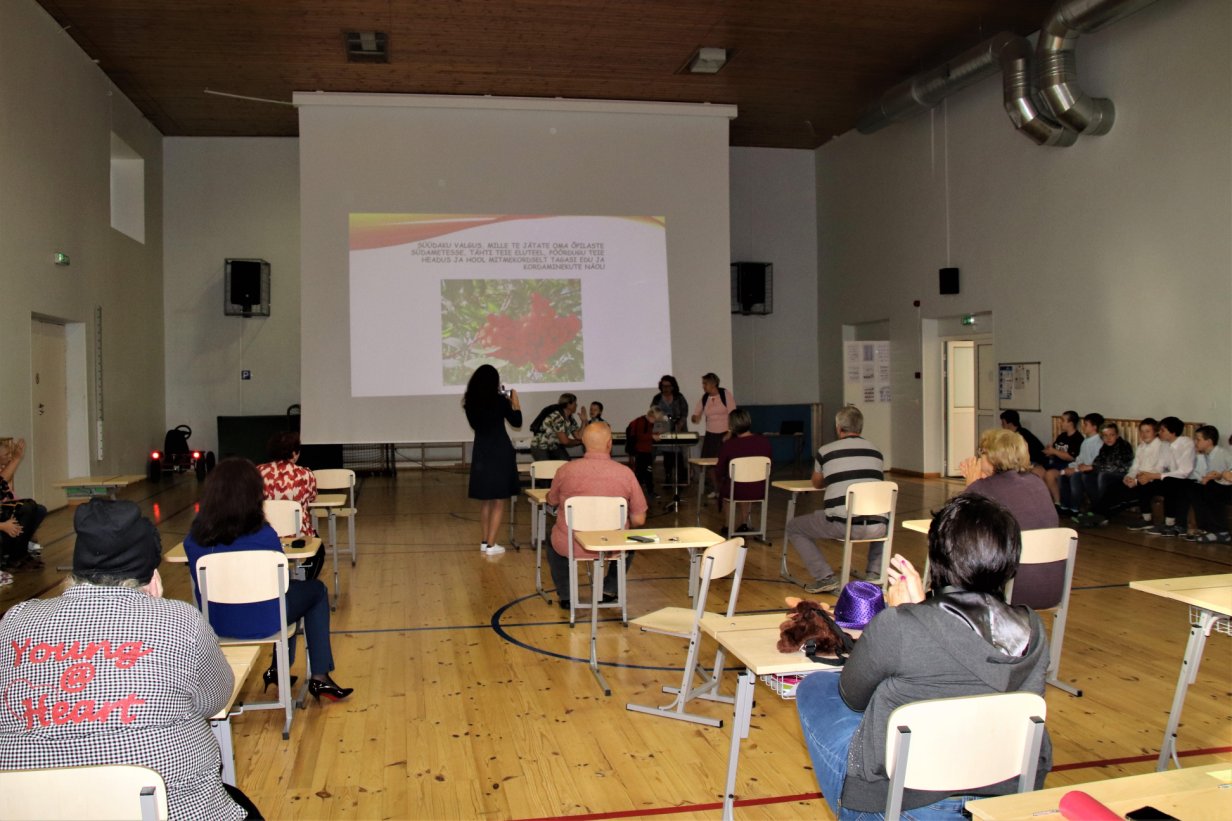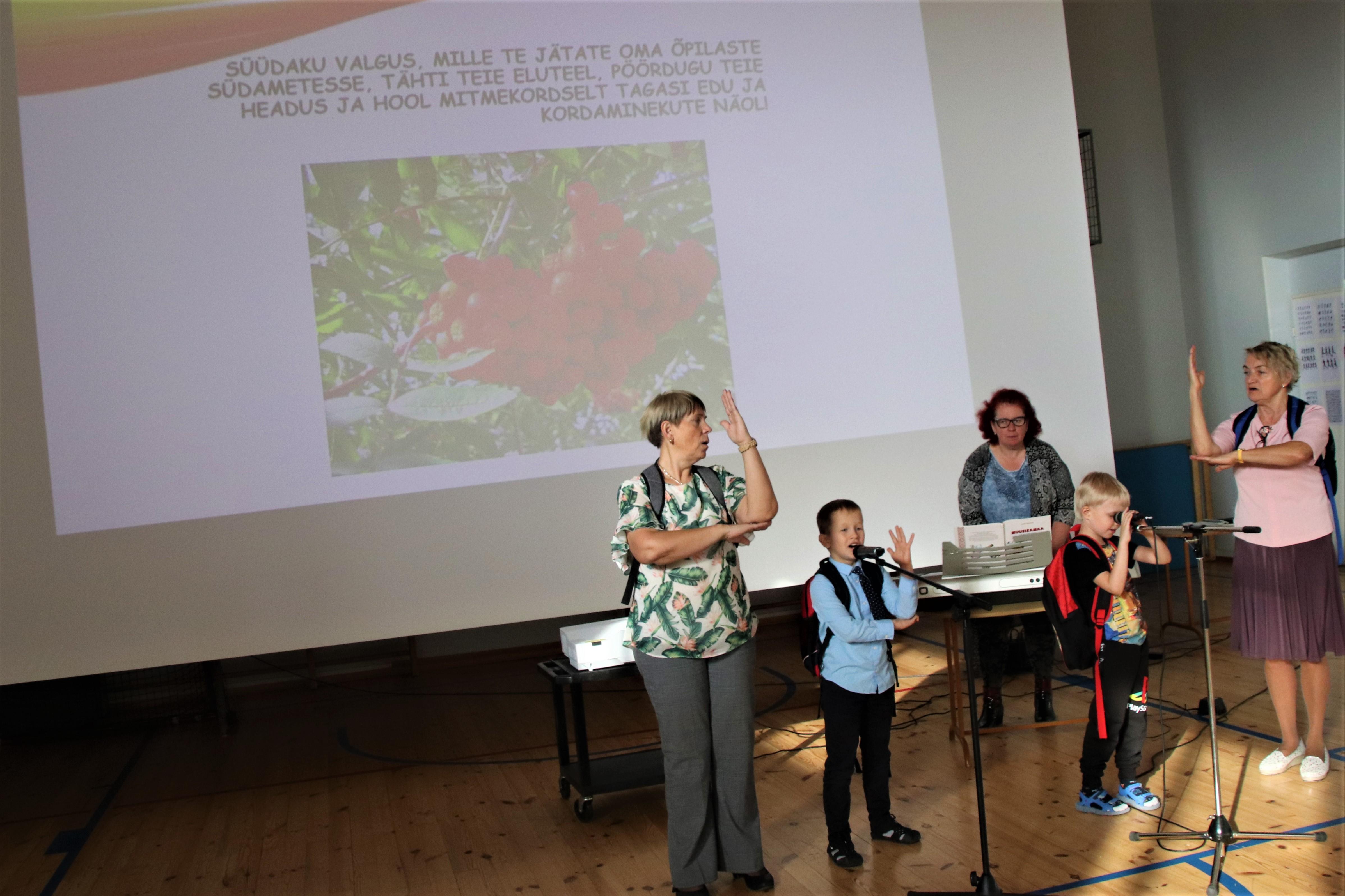 Kogunesime saali, kuhu olid koroonaaja tingimustele vastavalt paigutatud laiali toolid ja lauad. Nende taga võtsid kohad sisse õpetajad, kes kehastusid nüüd õpilasteks. Tegelikult oli meile antud ka ülesanne riietuda sel päeval võimalikult õpilaslikult. Ja kaks meist olid seda eriti – õpetajad Vapu ja Janne: pluusid kirjadega, nokats või vilkuv kauboimüts peas, äge seljakott seljas jne.