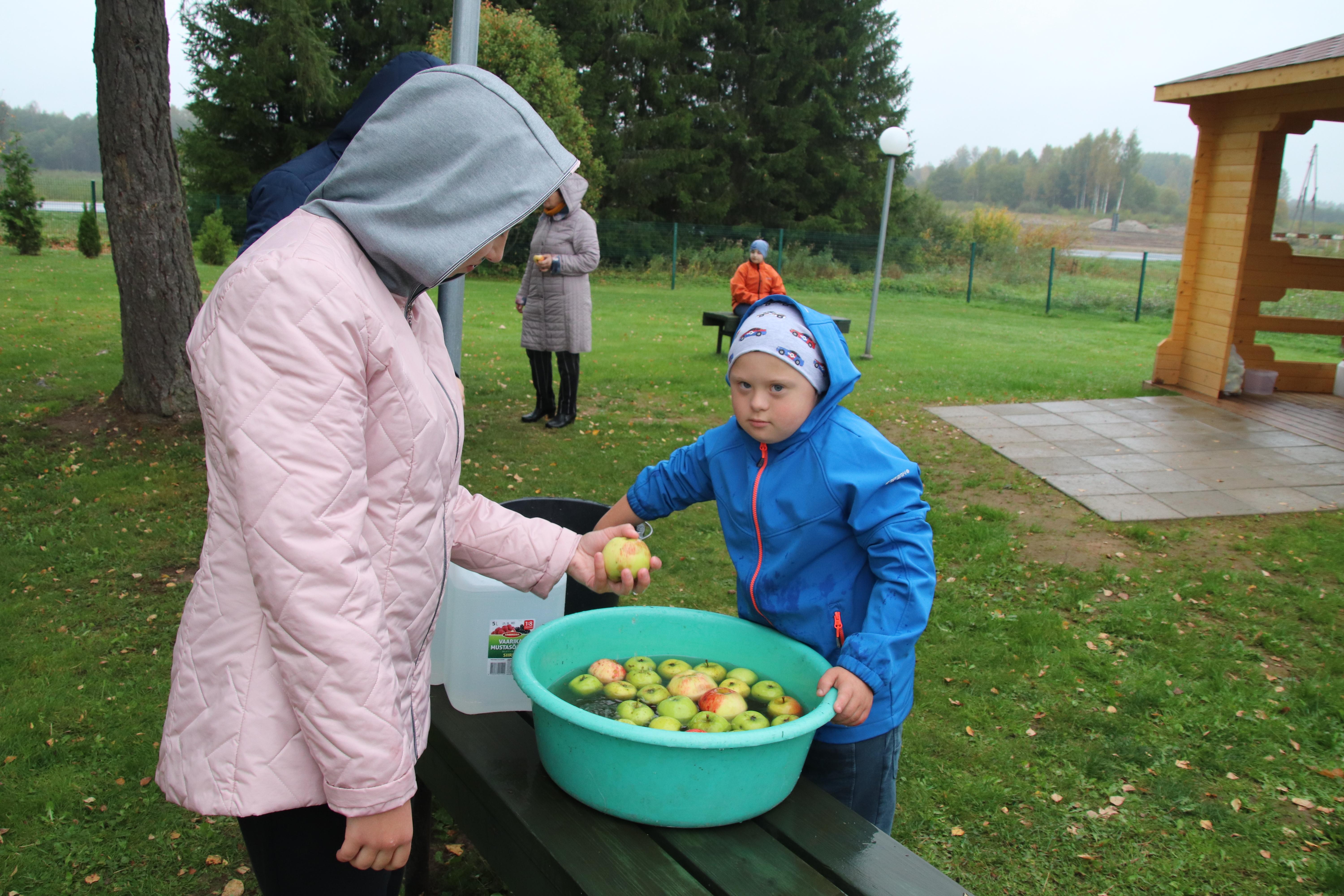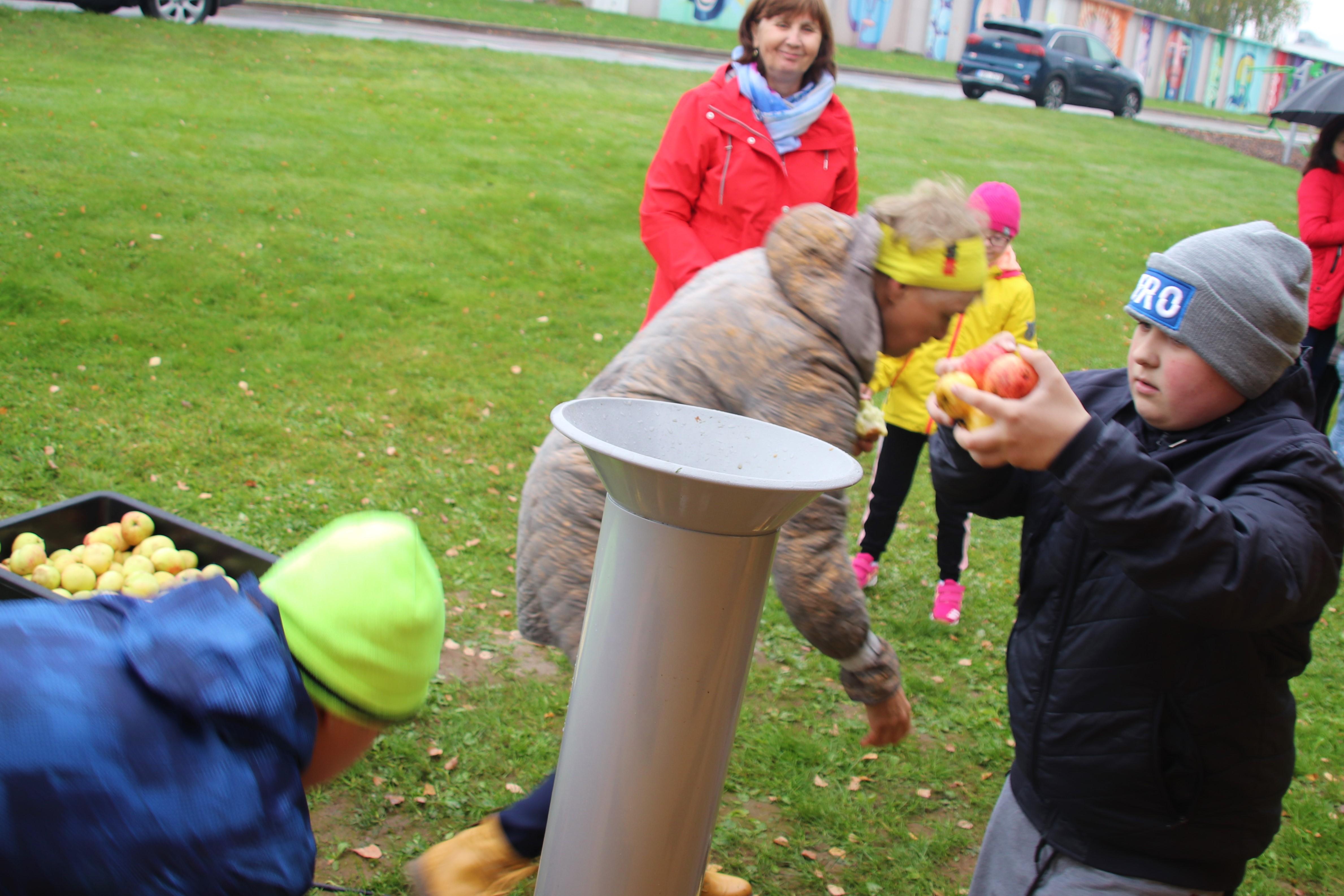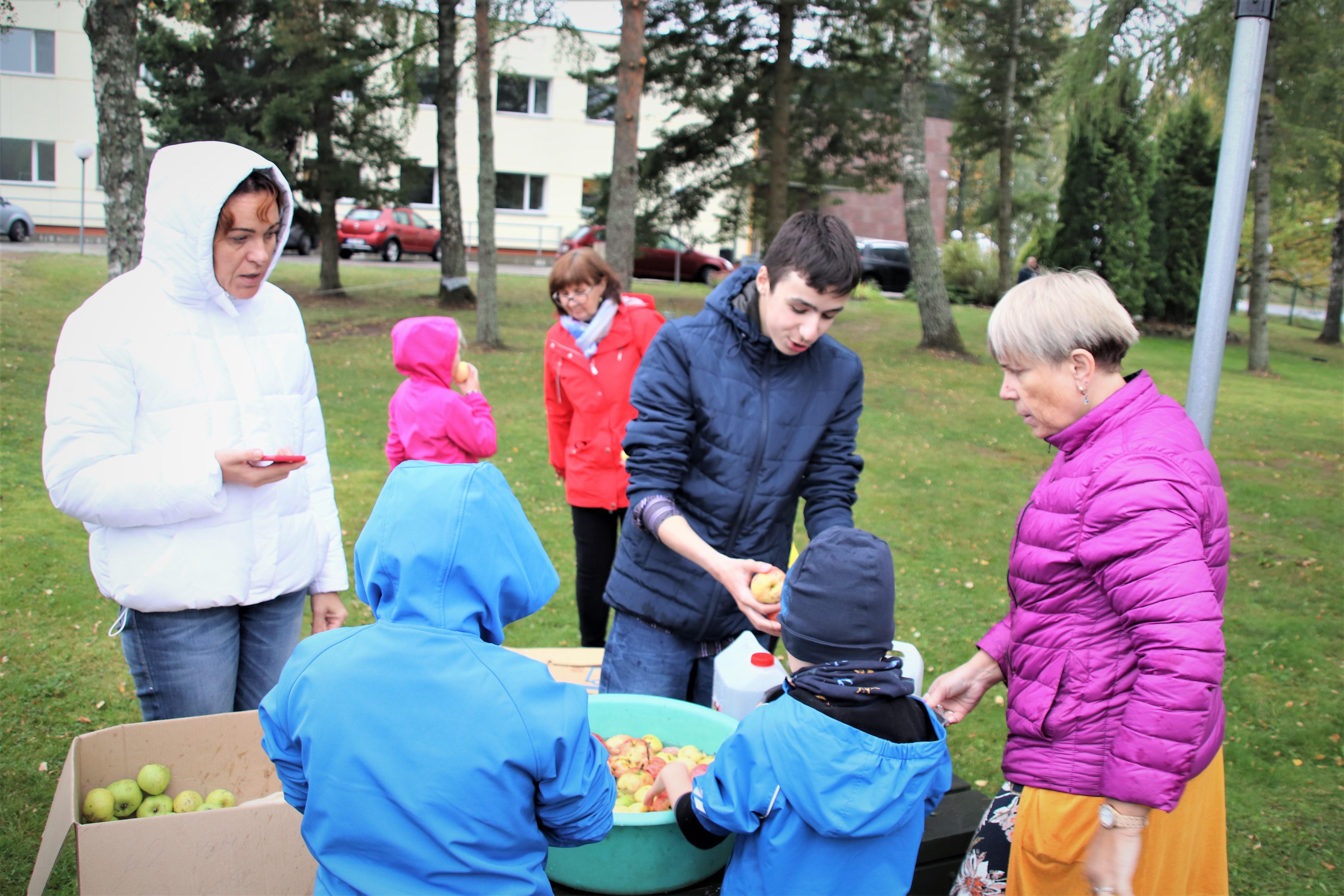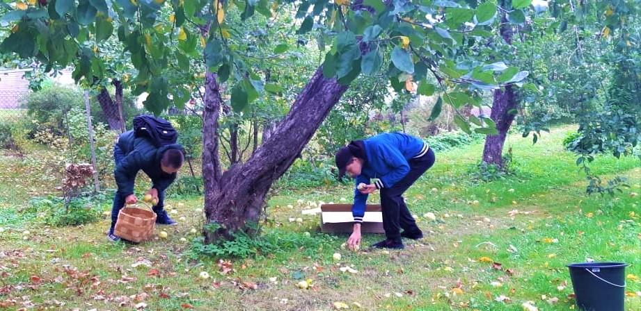 Aga kust need õunad kooli said? Eks Külli ja õpetajad olid toonud. Ja esmaspäeval käsid õpetaja Oksana klassi poisid oma klassikaaslase Kerdi aias õunu korjamas. Seda tehti suure innu ja õhinaga! Nii et õunu jätkus ka söömiseks.