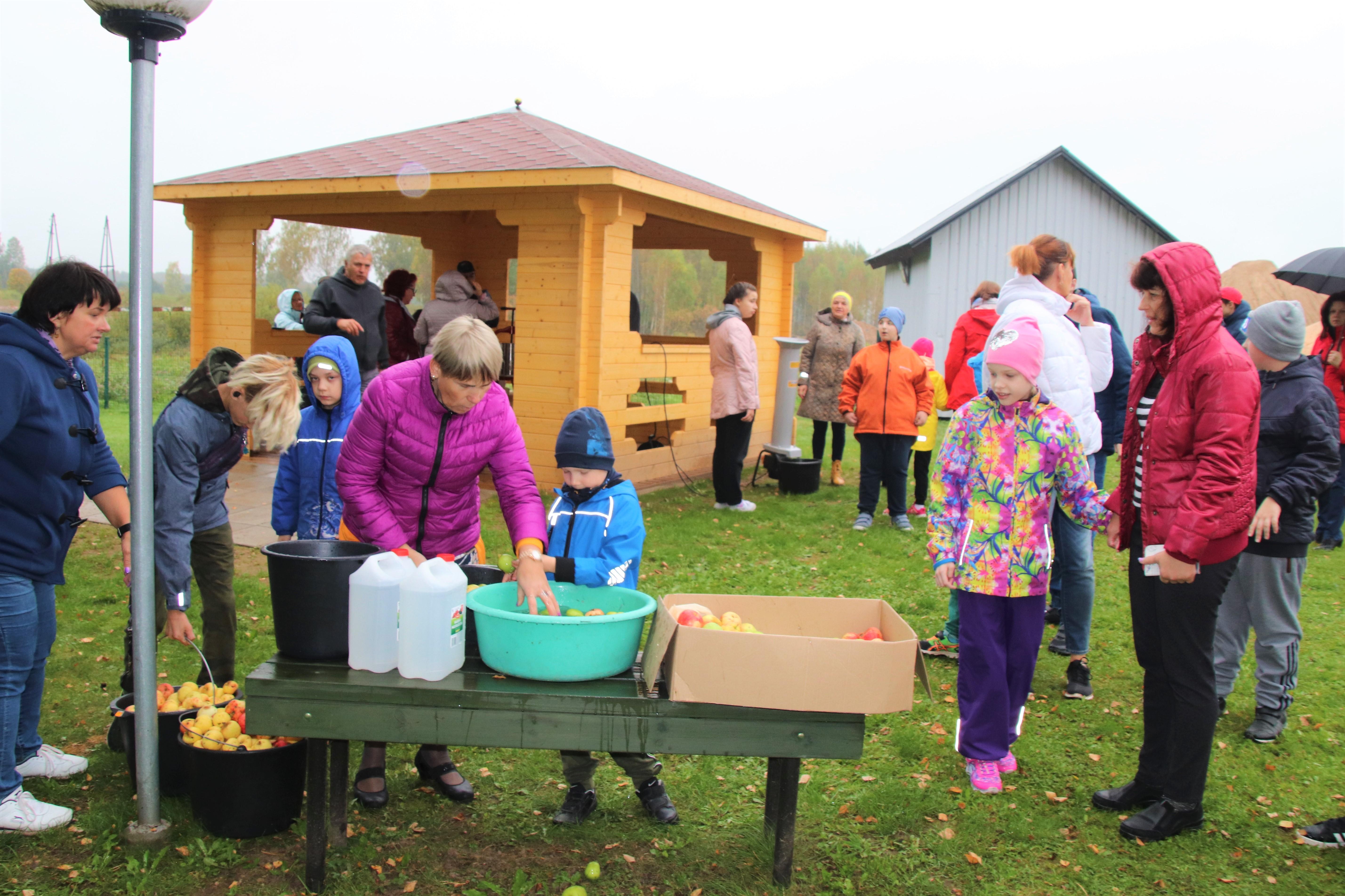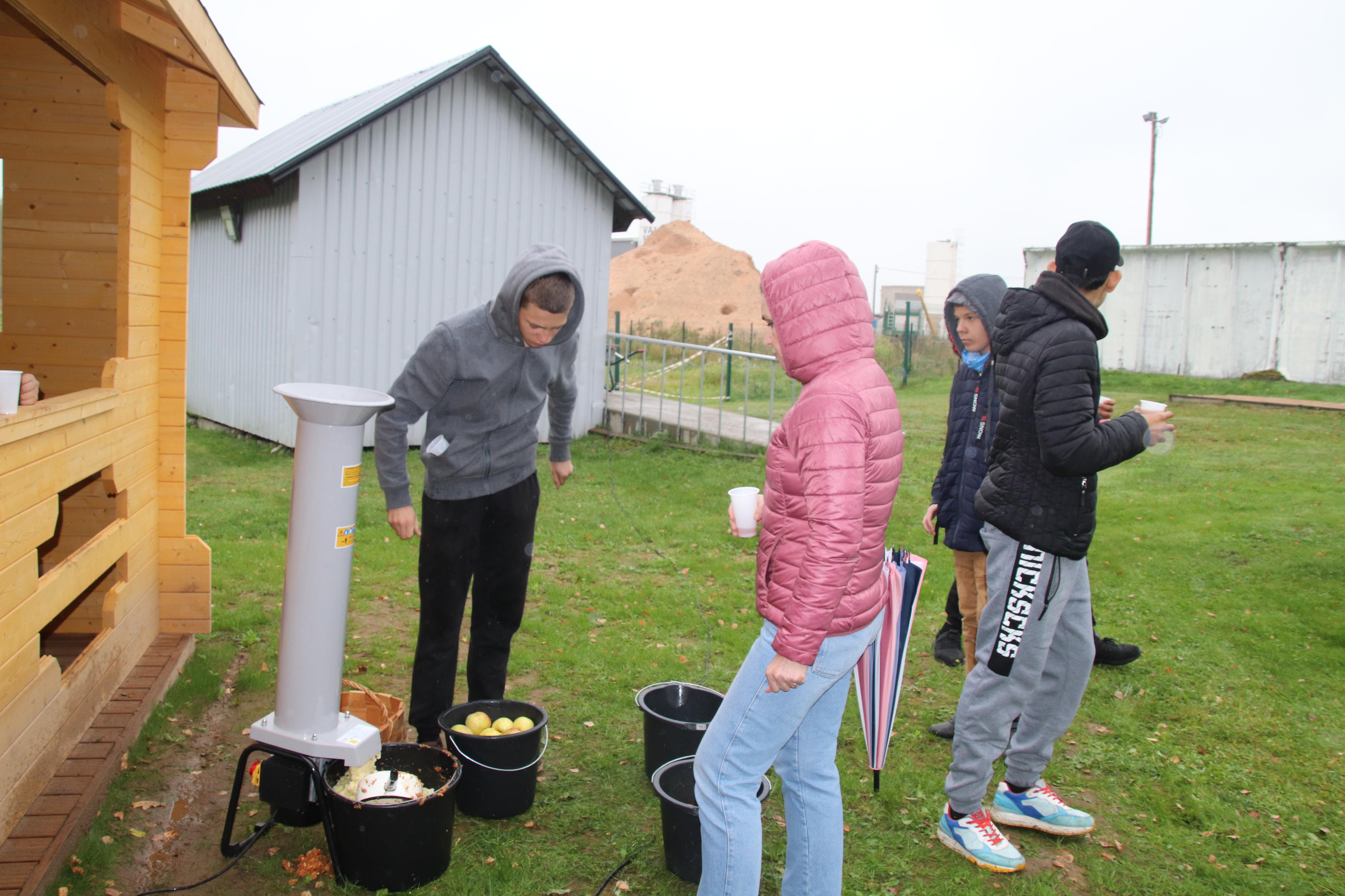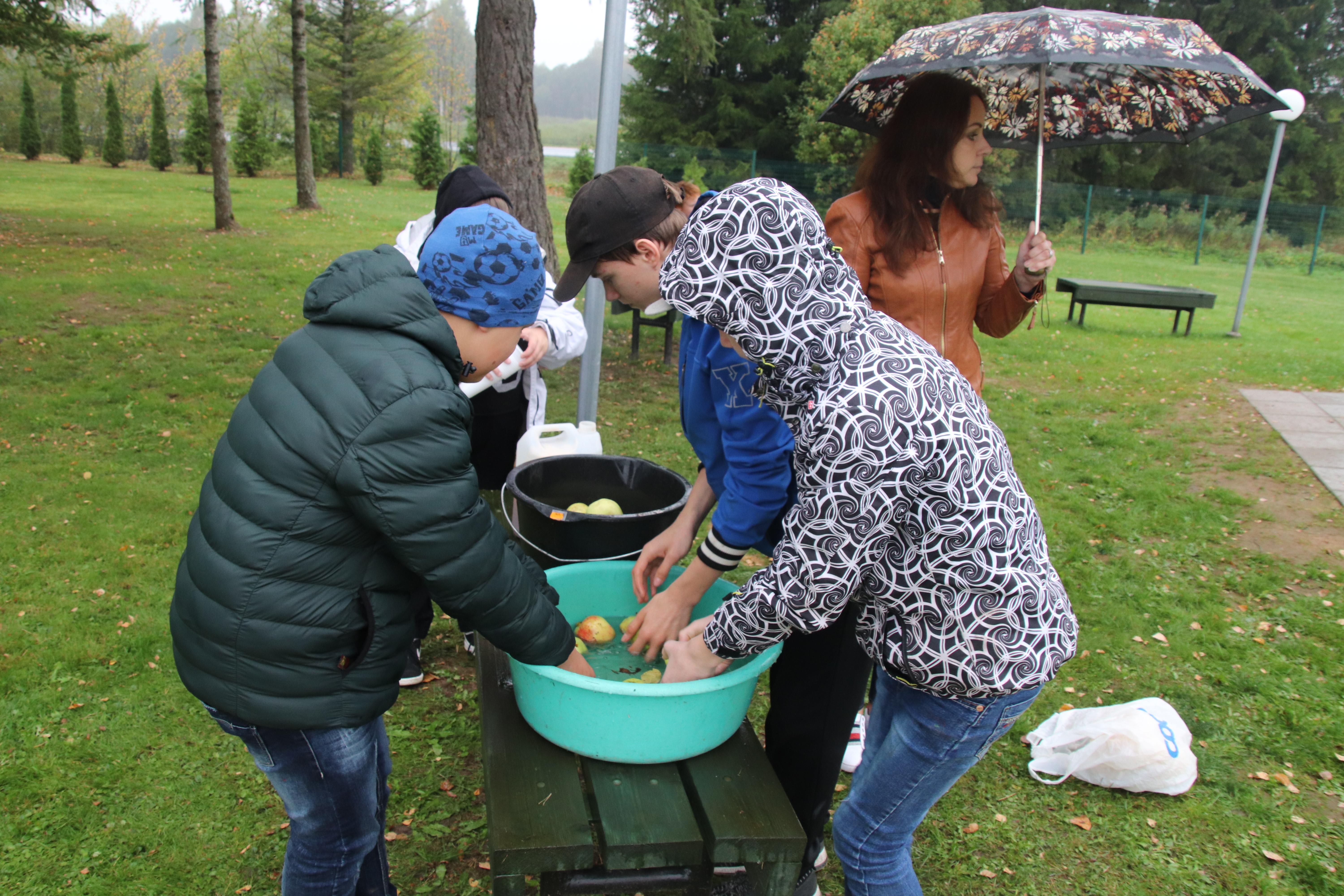 Kõik õpilased said osaleda talgutel. Kolmanda tunni ajal tegutsesid väiksemad klassid, tund hiljem läksid suuremad. Kõigepealt tuli õunad ära pesta. Suuremad poisid tassisid vett, kõik valmis suurimas koostöös ja abivalmiduses. Osad lapsed tõstsid pestud õunad purustajasse. Eriti vahva oli, kuidas väike Remi kiiresti kummardas, võttis õuna ja viskas purustajasse. Ja nii jälle ja jälle. Aga kõik töötasid innuga oma valitud tegevuste juures.