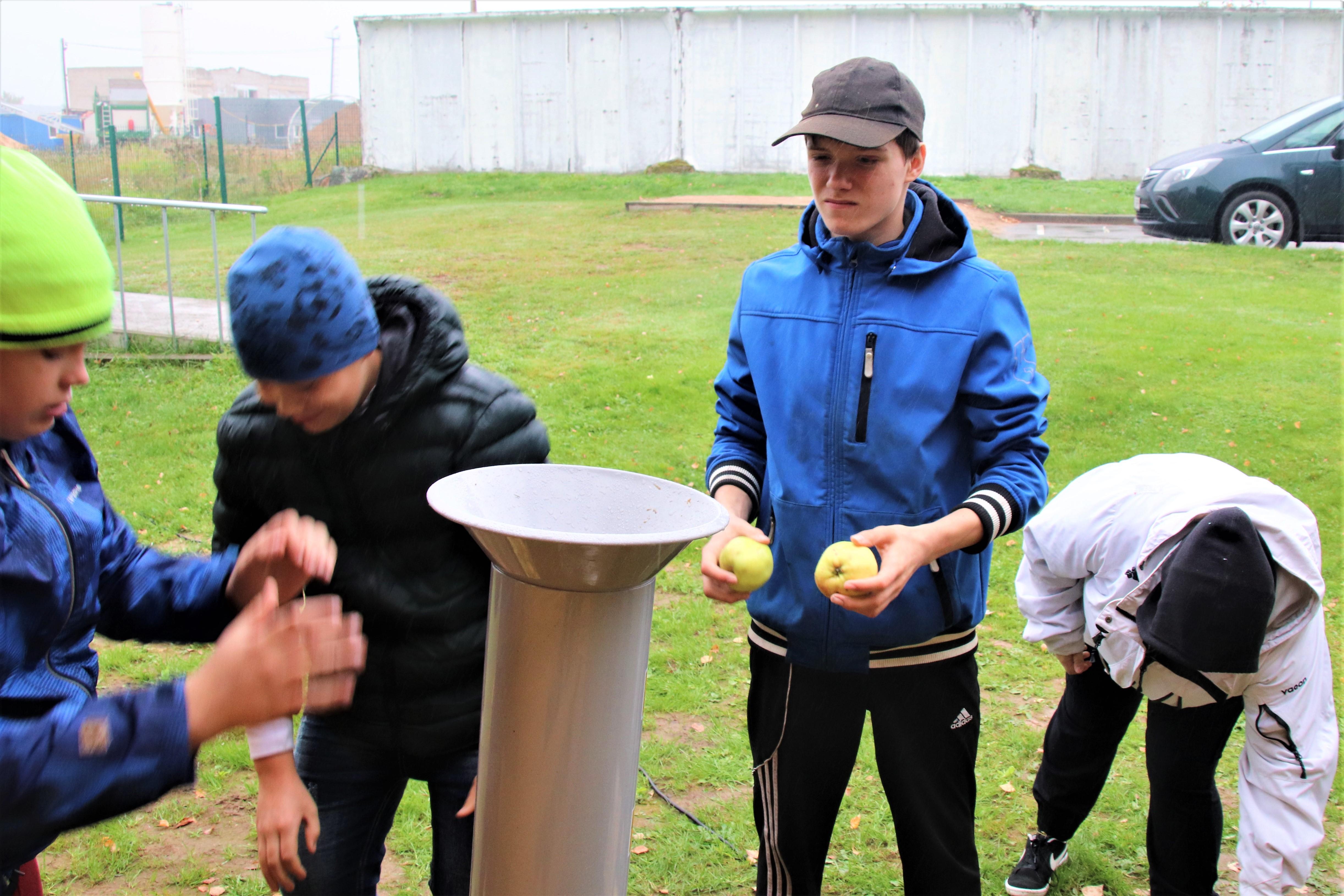 Teisipäeval, 28. septembril, olid meil õunamahlatalgud. Õpetaja Janne kodunt olid kooli õue toodud ja üles pandud elektri toel töötavad õunapurustaja ja –press.