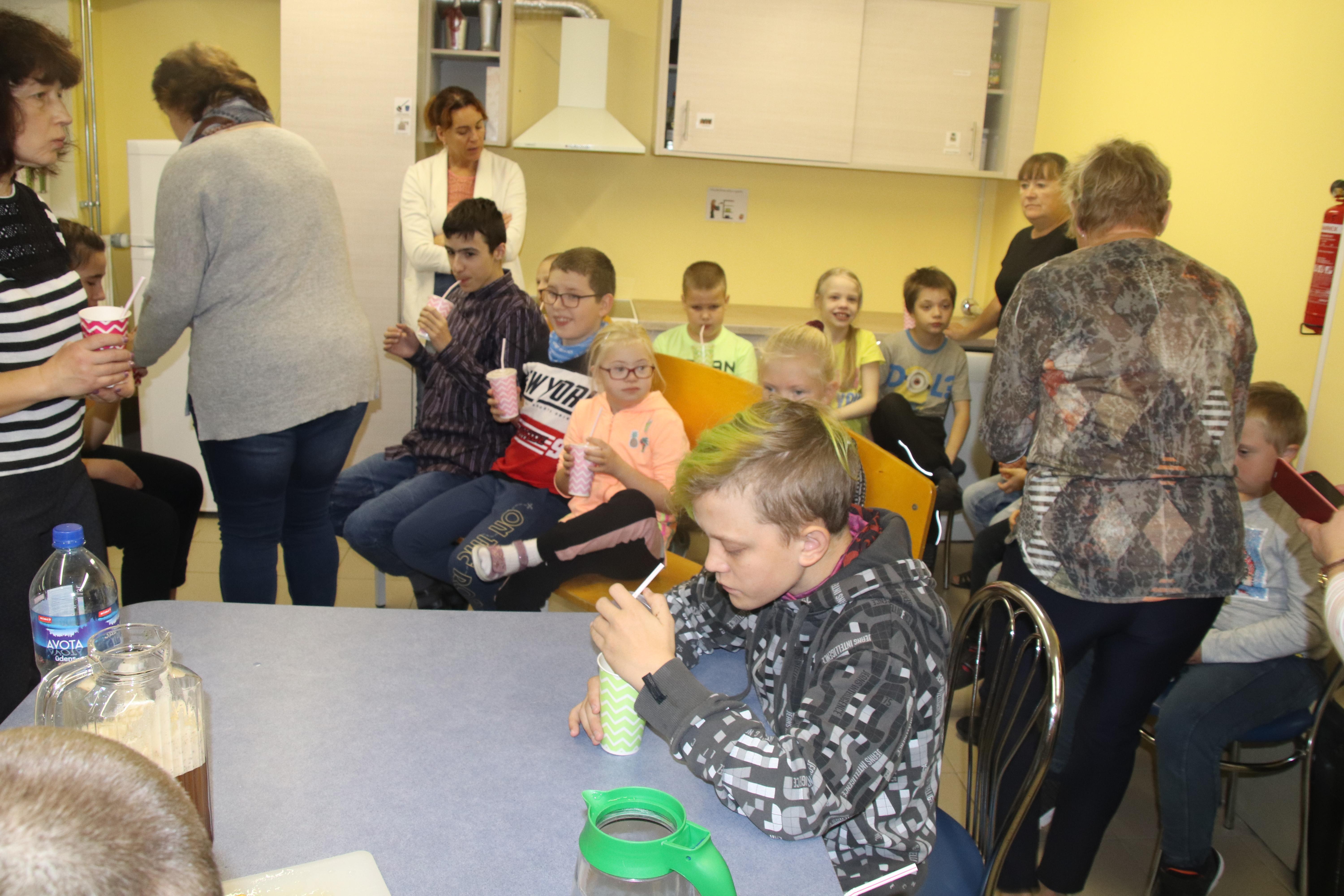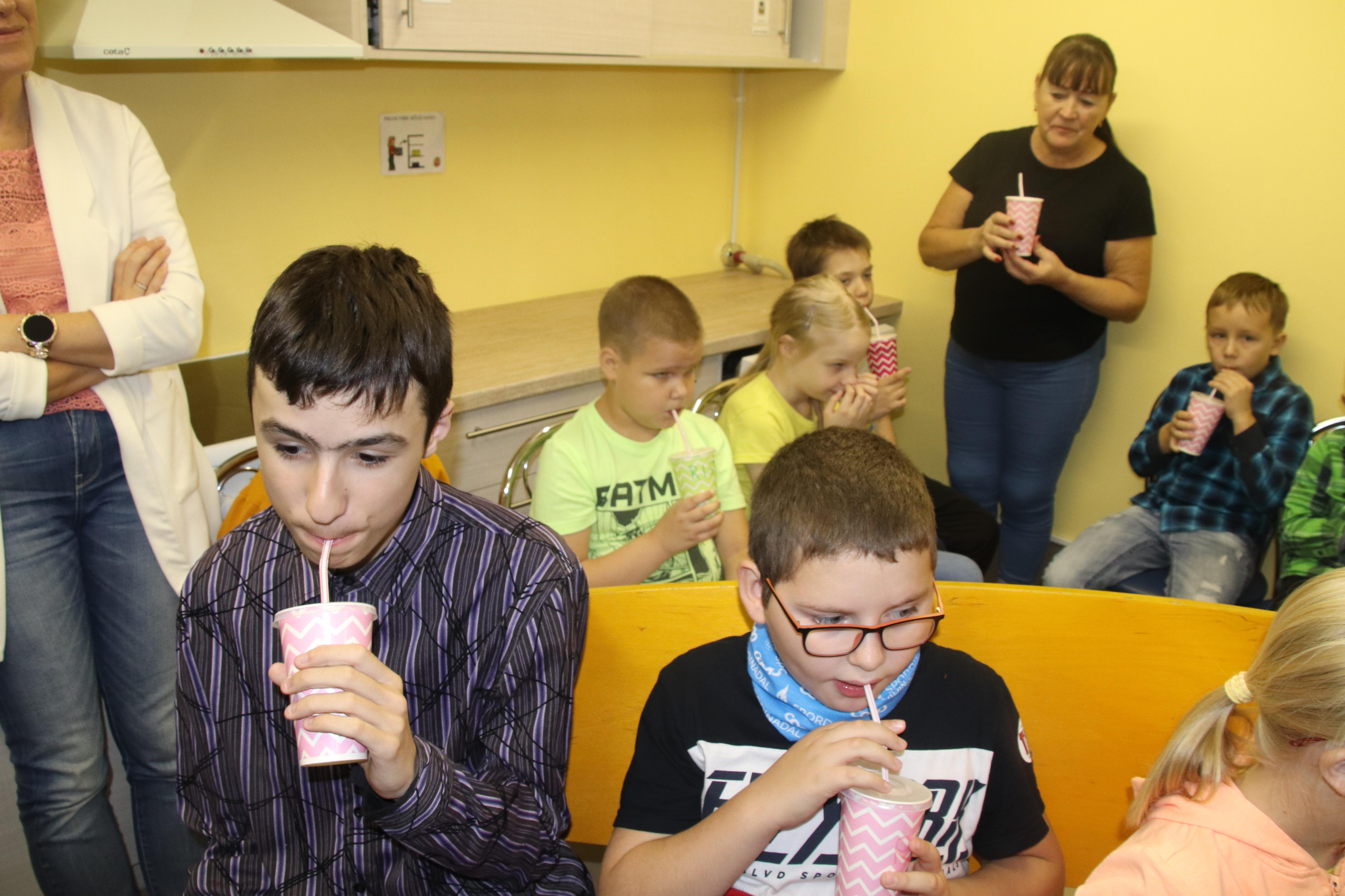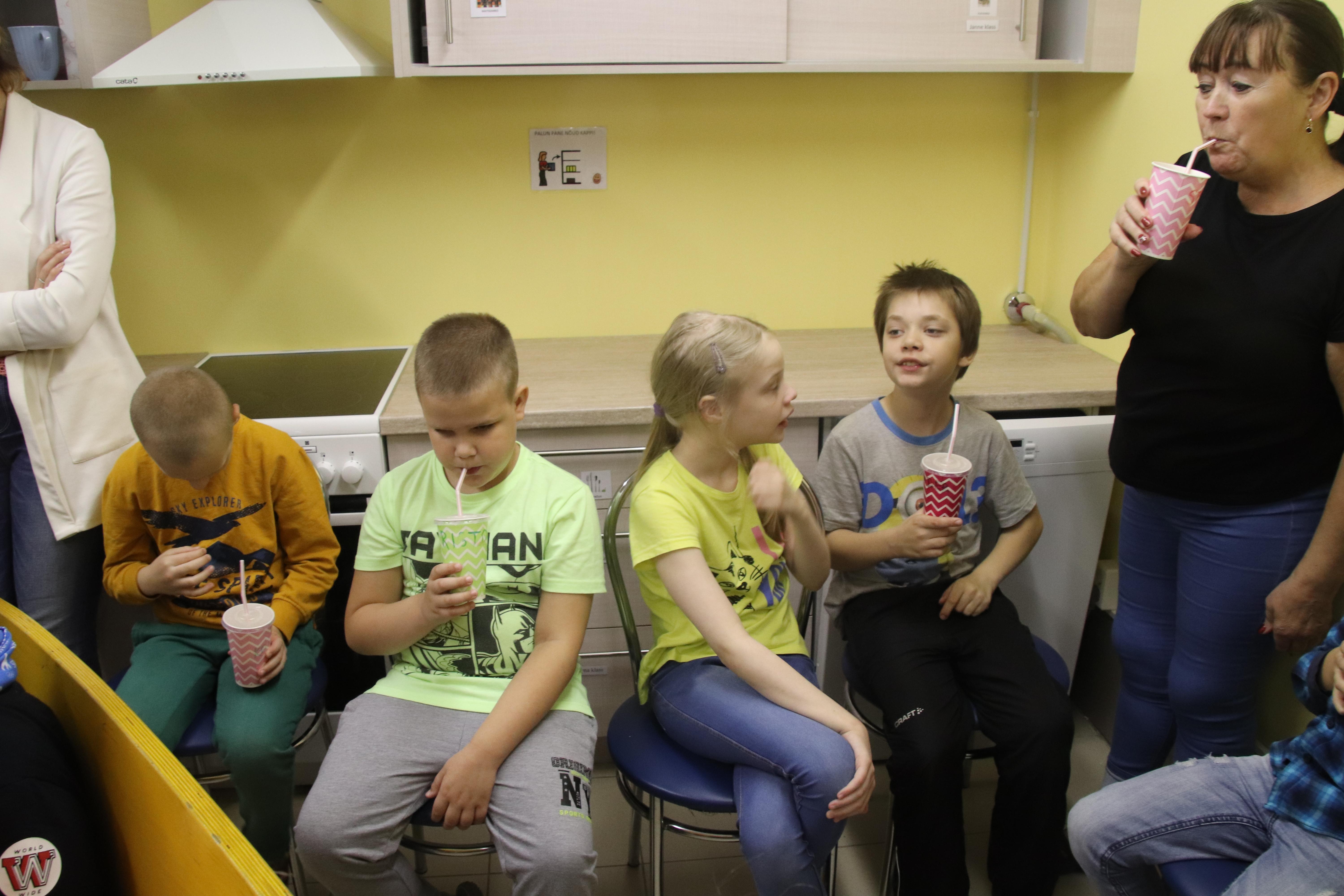 Kui tuli vanemate laste mahlategemise kord, liikusid väiksemad järgmisel tunnil õppekööki õpetaja Vapu juhtimise alla. Ta oli juba värskest õunamahlast ja piparmündist valmistanud tõmmise, kuhu mineraalvett lisades valmis esimene kokteil. Kõikidele lastele olid nimelised topsid kõrrega ning kõik said õpetaja selgituste saatel ka kokteili juua. Seejärel tegi õpetaja Vapu jäätisekokteili mahlast. Küllap see maitses lastele kõige rohkem.