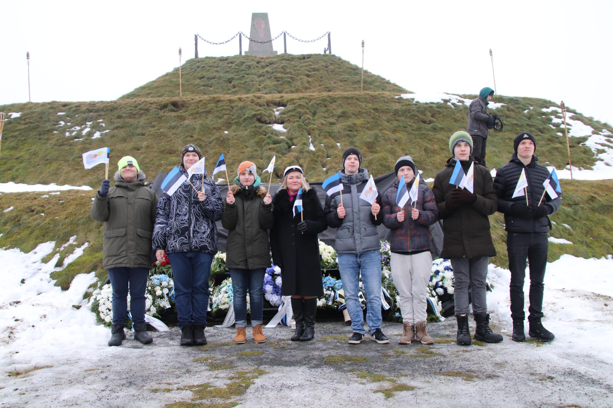 Tähtsal mälestustseremoonial Paju mälestusmärgi juures osalesid õpetaja Oksana, Mareti, Õie ja Janne klasside õpilased.