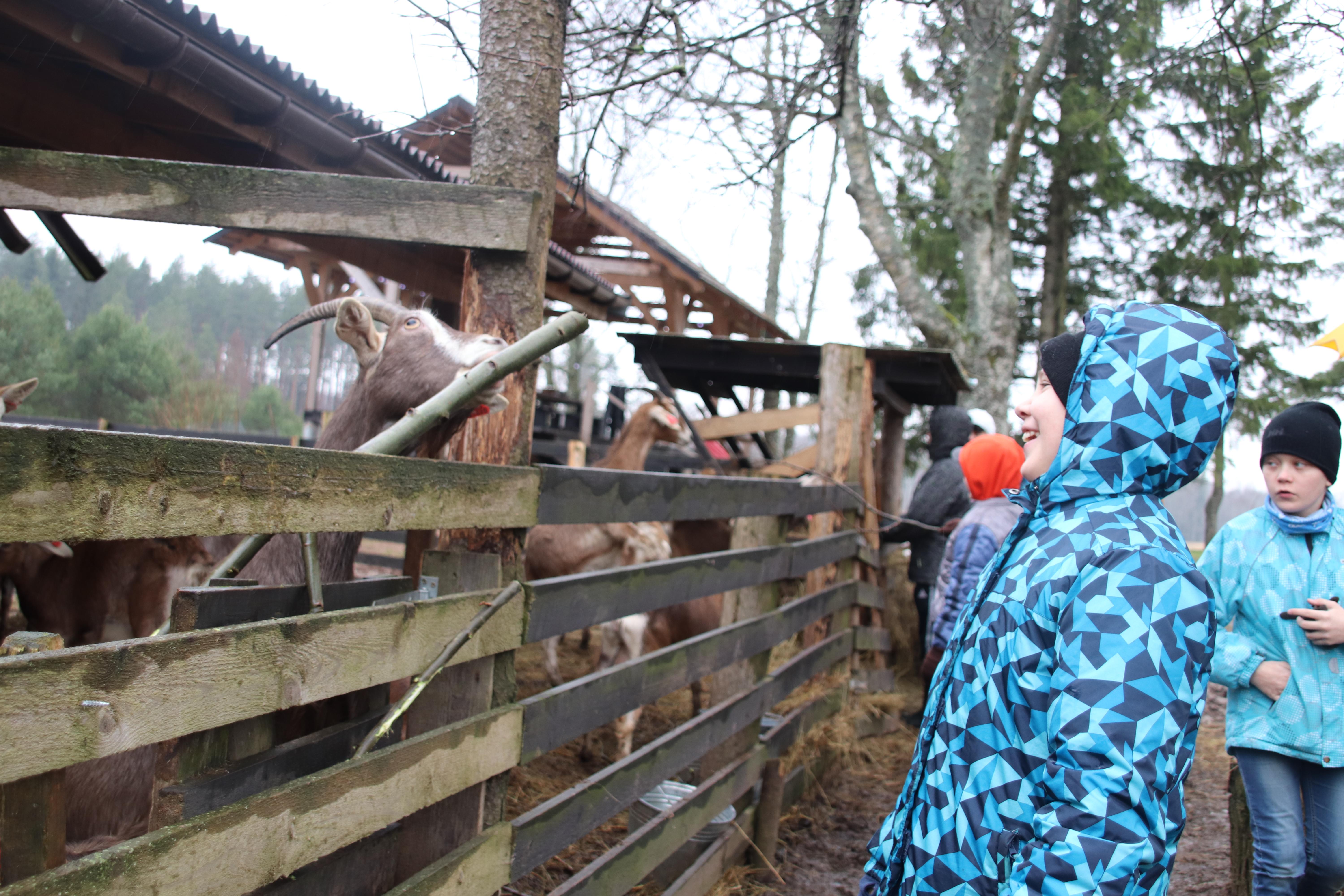 Kohe suundume kitsede aediku. Suursugused ja rahulikud tegelased uudistavad meid ja lasevad end üle aia silitada-kudistada-kõhvitseda-habet siluda. Kitseisad ehk sokud on sel aastaajal eraldi aedikus. Emade juures on näha ka paar talle, kellest ühe nimena jääb meelde Lumepall. Muide, kõigil loomadel on nimed. Kitsed on parasjagu kinni, st ootavad beebisid või toidavad juba sündinud tallesid piimaga, seega inimesed parasjagu kitsepiima ei saa ja juustu ei toodeta.
