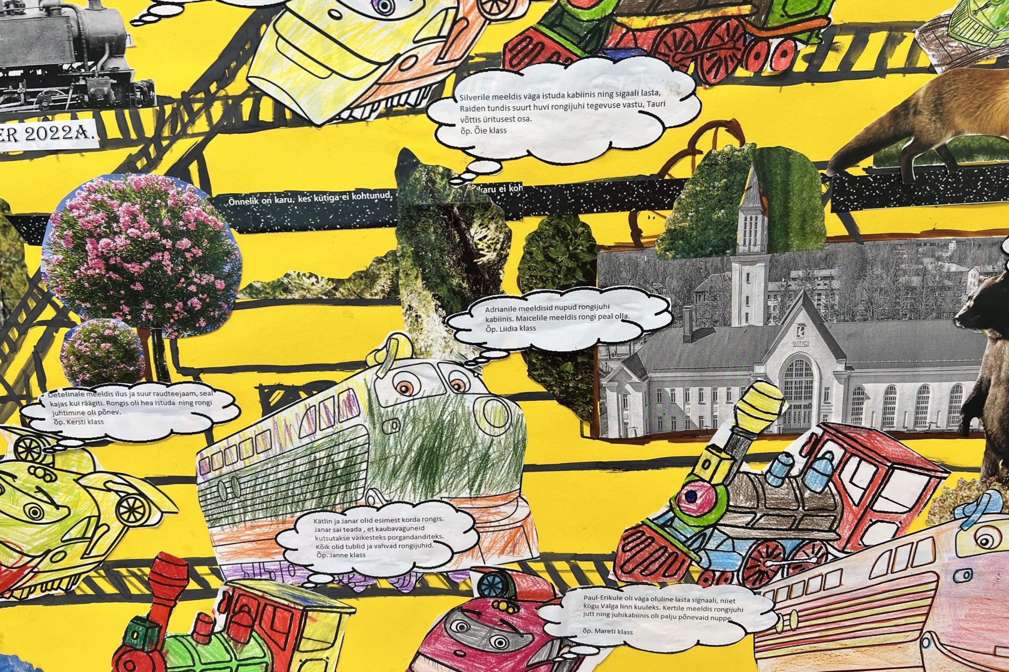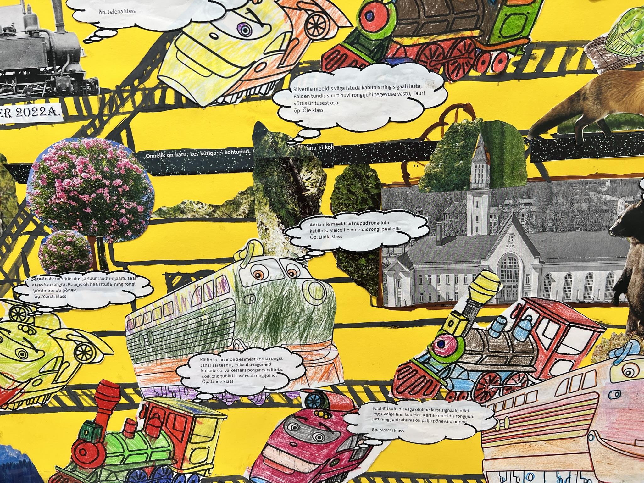 7.novembril osales meie kool Valga –Tartu rongiliikluse 135.aastapäevale pühendatud üritusel, mille korraldajaks oli Valga muuseum. Järgmisel päeval oli koolis palju juttu rongidest ja mis kellelegi seal kõige rohkem meeldis. Õie klassi lastelt tuli soov värvida rongide pilte ja joonistada raudteejaama. Nad kaasasid oma tegevusse ka teiste klasside lapsi ja otsustati teha ühine suur pilt ja kinkida see Valga muuseumile . Kõikide laste värvitud rongid said kleebitud ühisele pildile. Selle kujundamisel abistas meid õpetaja Jüri. Kõikide klasside lapsed jagasid meiega oma muljeid üritusest ja need said kleebitud kollaažile jutupilvedesse. Sellest kujunes põnev projektipäev, milles osalesid kõik algklaaside õpilased ja ka õpetajad.