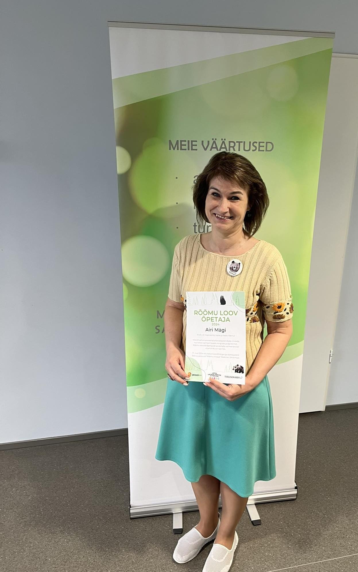 Meie koolist pälvis tunnustuse ja tänukirja õppejuht Airi Mägi, kes on silma paistnud oskusega olla julgustav ja rõõmsameelne nii õpilaste kui kolleegidega suhtlemisel. Tema huumorimeel tõstab tuju ja toob koolipäeva positiivseid emotsioone.