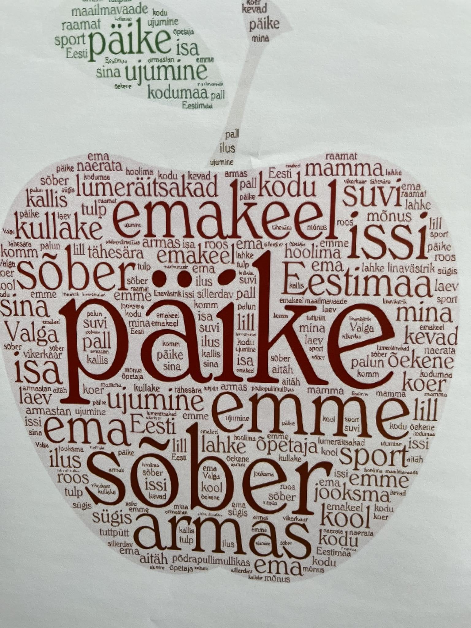 Ja nii me tegimegi „akrobaatilisi trikke“ eesti keele sõnadega ja oma kehaga: esmalt kirjutas igaüks ilusa eesti keele sõna - nendest sai kokku vahva sõnaõun ning stendilt sai igaüks kõik sõnad üle lugeda; kahel vahetunnil virgutasime keha tähekujundite võimlemisega; tunnis kirjutati Eestimaaga seotud sõnu. Unarusee jäänud, üldkeeles vähe kasutatavate sõnade e. unarsõnade viktoriini lahendamisega sai paljude sõnade nagu lõusk, jookla, reivik jt tähendus meelde tuletatud – see oli lausa lõbus. Vahetundideks toodi kooli raamatukogu varamust välja sõnamängud mõistatustega ja vanasõnadega ning tähepusle.