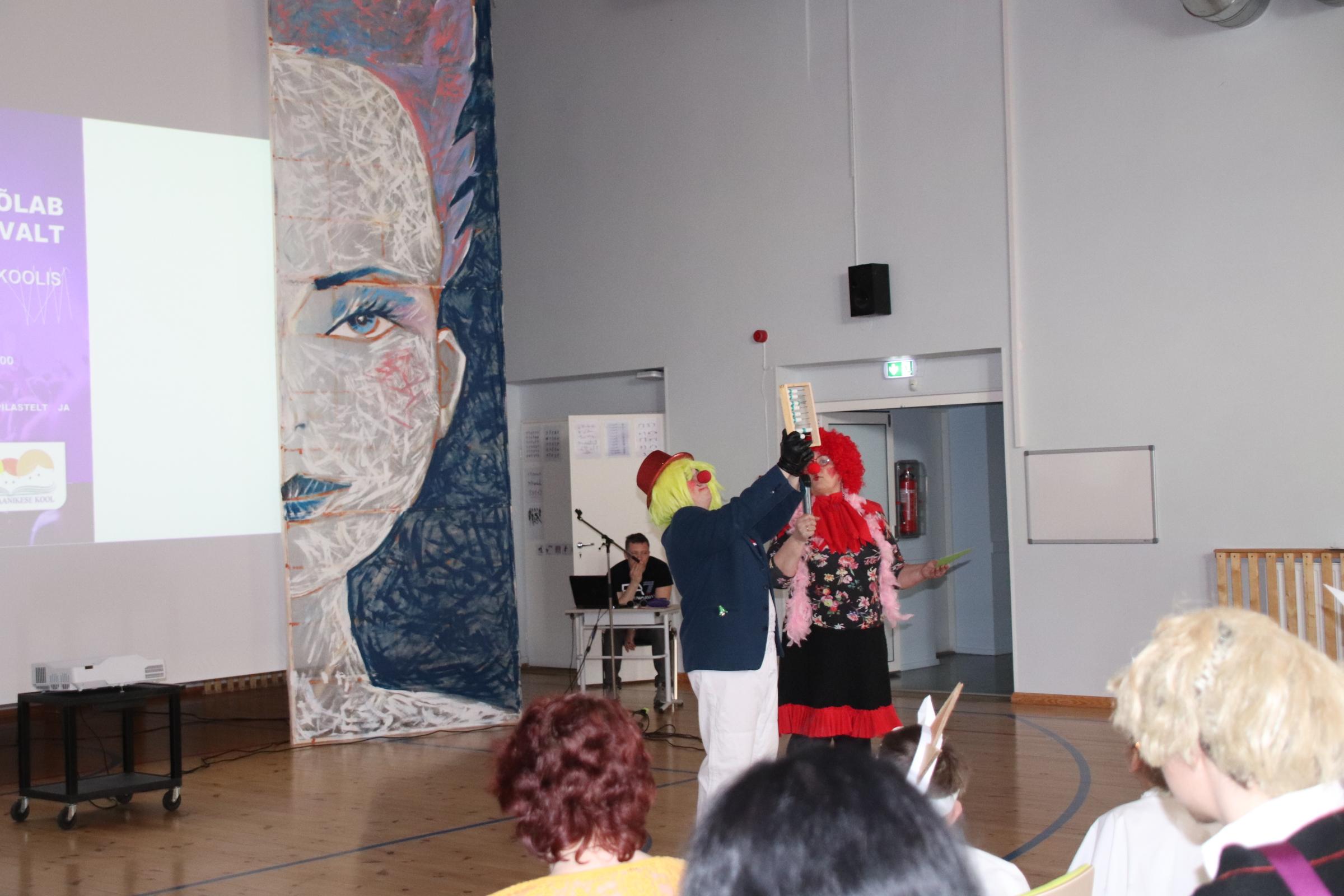 Külaliste saabudes ootasid neid juba klounid Roosi ja Ruudi (õpetajad Erika ja Õie), kes olid terve päeva juhtideks. Klounid juhatasid sisse ja välja kõik esinemised, jagasid esinejatele šokolaade ning „juhendasid“ žürii tööd.