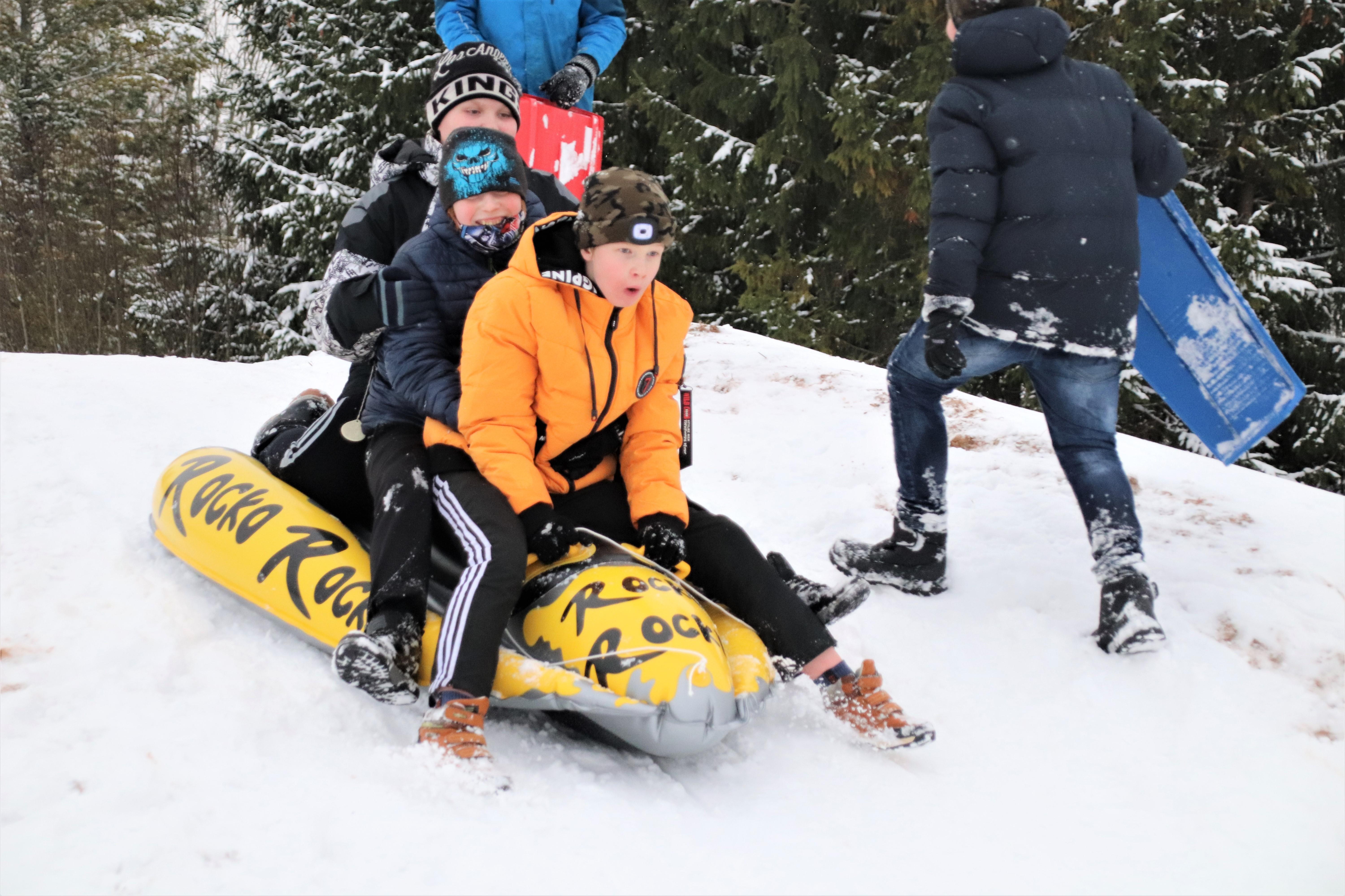 Küll nüüd on kelkudel tööd, ikka mäest üles ja alla. Kuna viimased talved on olnud lumevaesed, on kelgud olnud „ töötud“.