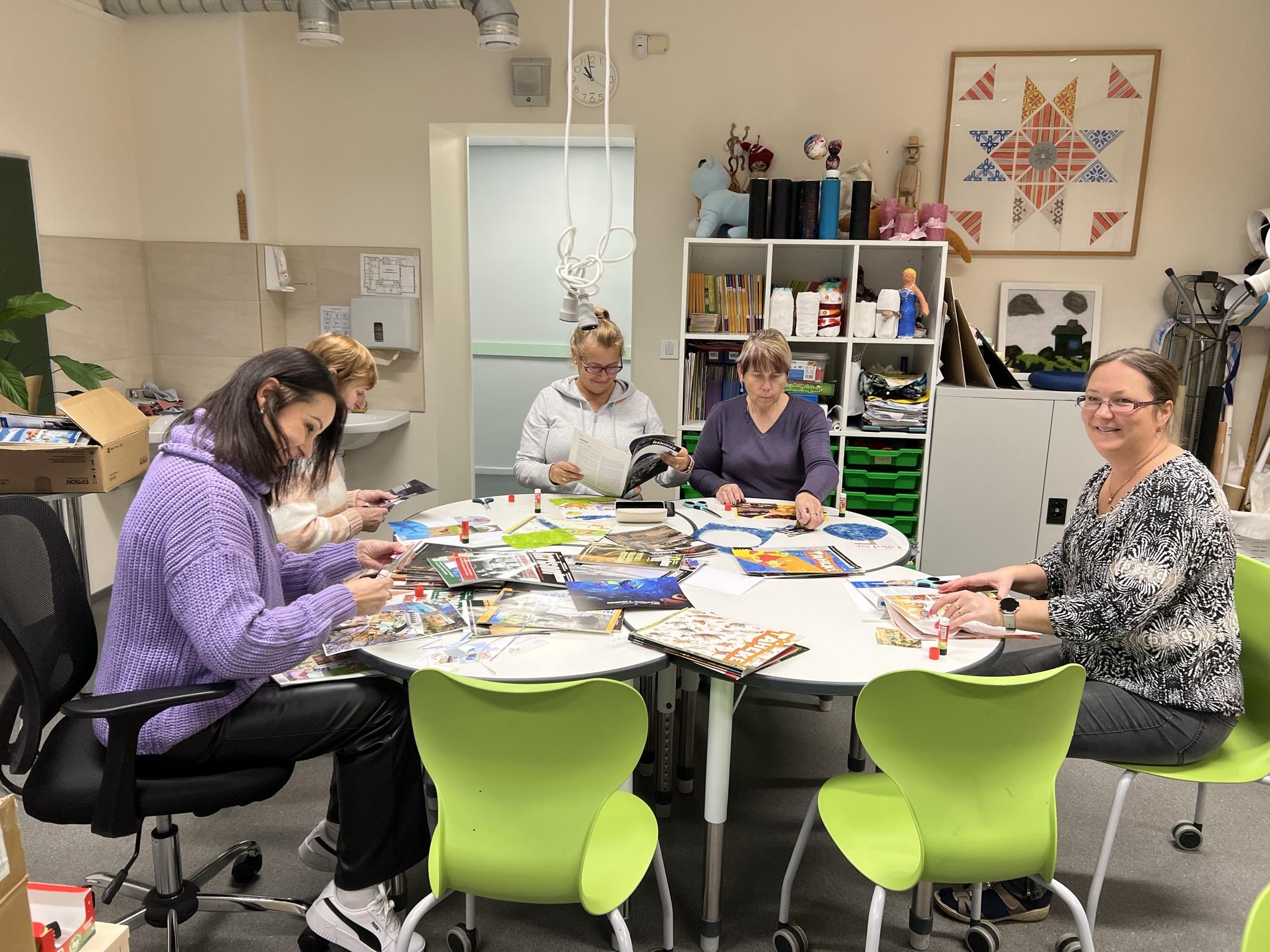 Õpetaja Maret näitas huvitavaid harjutusi mida teha ärevuse, viha, ebakindluse või stressi tajumisel ning mida saab kasutada ka klassis õpilastega. Õpetaja Õie pani õpetajad kõigepealt tegema emotsionaalse enesetunde testi ning siis gruppidesse jagunedes lõpetasime tunnete kaartidega. Õpetaja Vapu juhendamisel tegime igaüks enda kohta kollaaži. Töö kogukonnas lõpetasime oma kollaaži tutvustamisega.