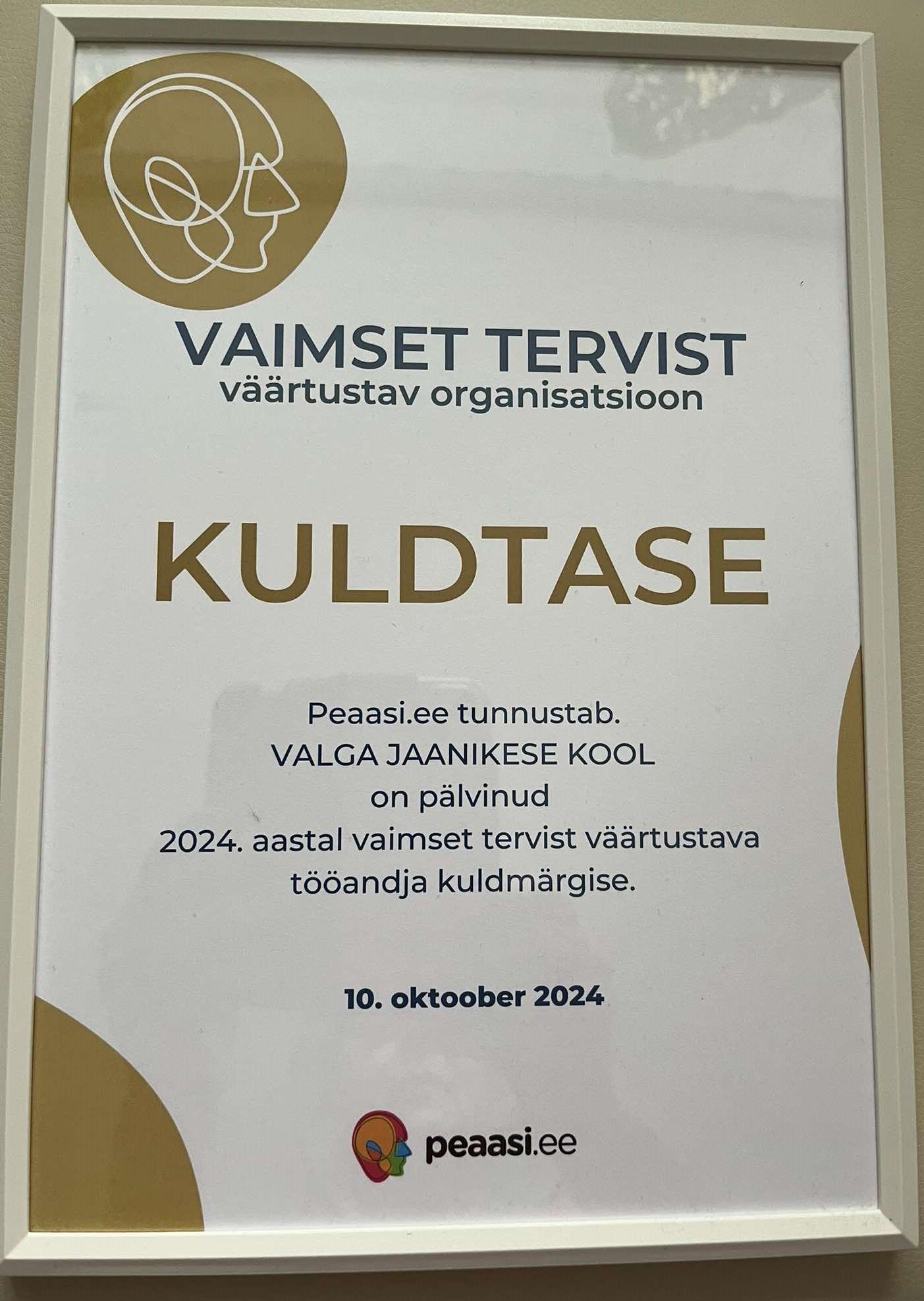 Meie tööd vaimse tervise nimel koolis hinnati KULDTASE märgisega.
