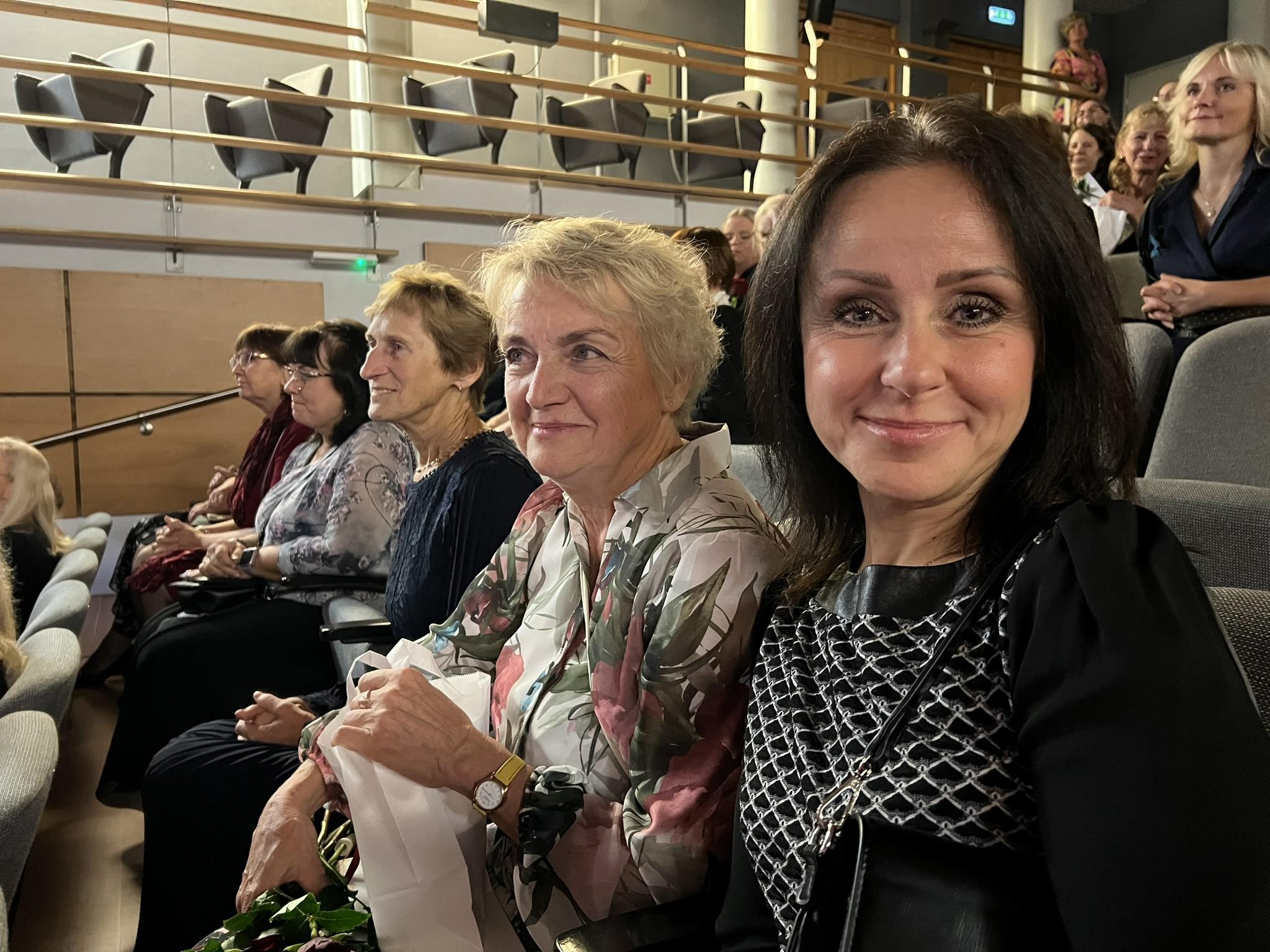 Fotol: Paremalt esimene aasta põhikooli aineõpetaja laureaat meie õpetaja Oksana Kalugina, teine juhiabi Leini Kirsimäe, kolmas õpetaja Viivi Nukk, edasi õpetaja Janne Salumäe ja Kersti Veltri.